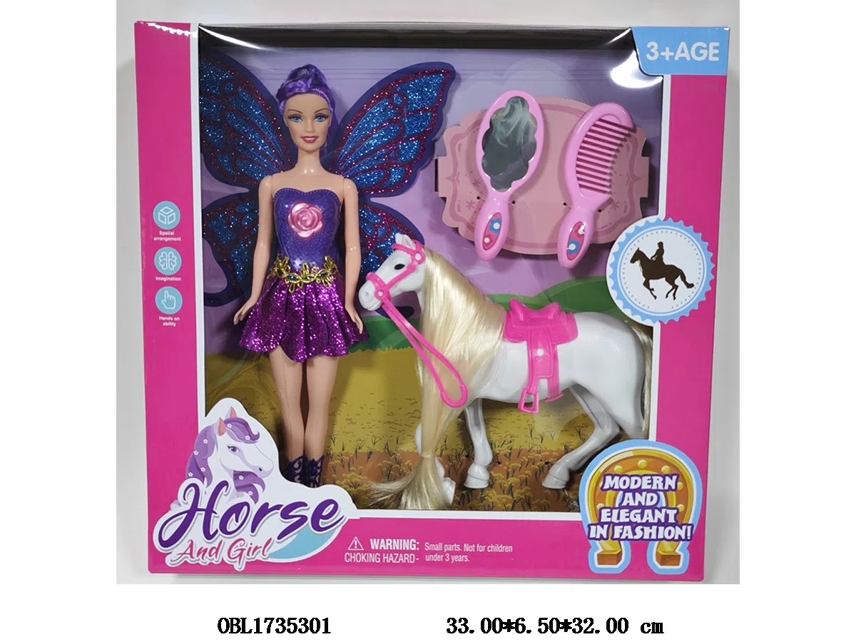 11.5 inch real body flower fairy Barbie set with accessories, horse strap, lighting, music, 3 * AG13, electric package, main clothing, 1 style, 1 color