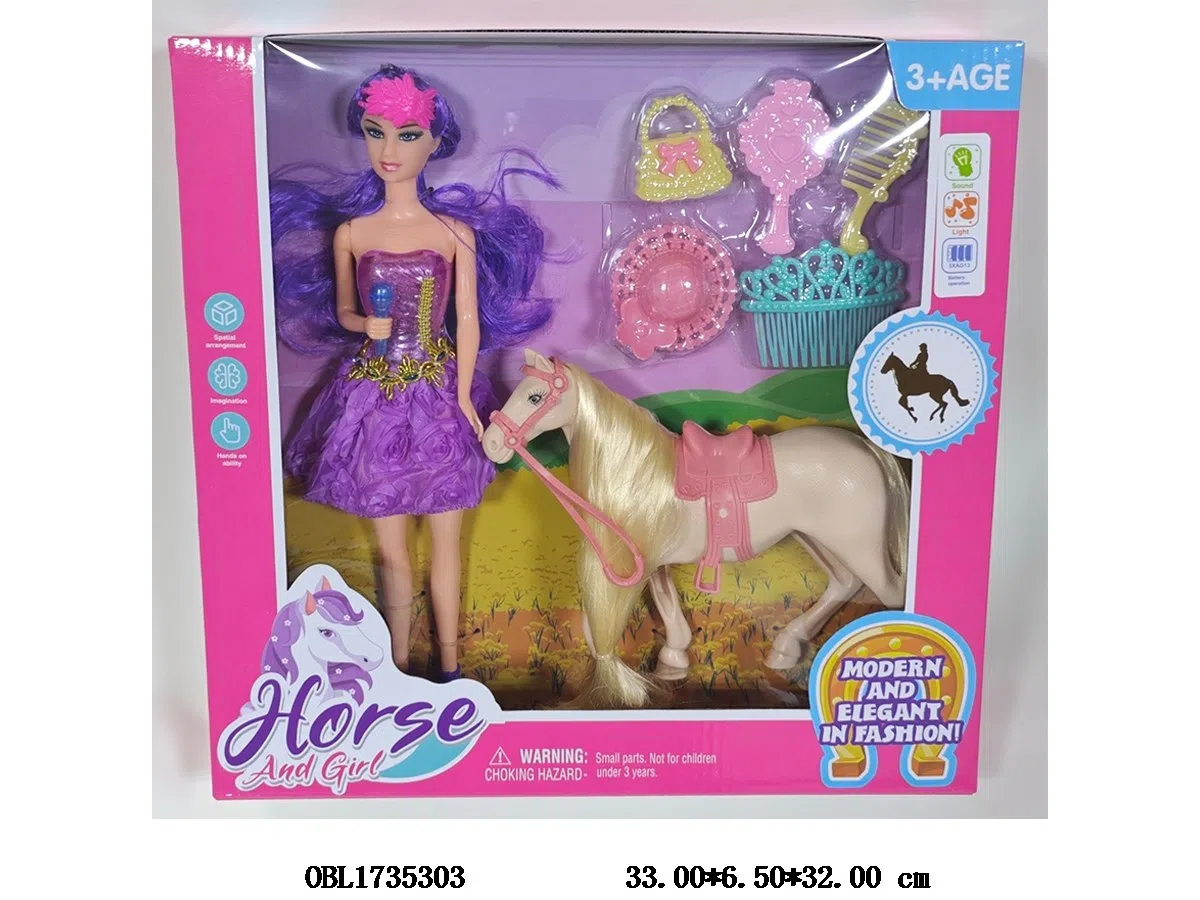 11.5 inch real body flower fairy Barbie set with accessories, horse strap, lighting, music, 3 * AG13, electric package, main clothing, 1 style, 1 color