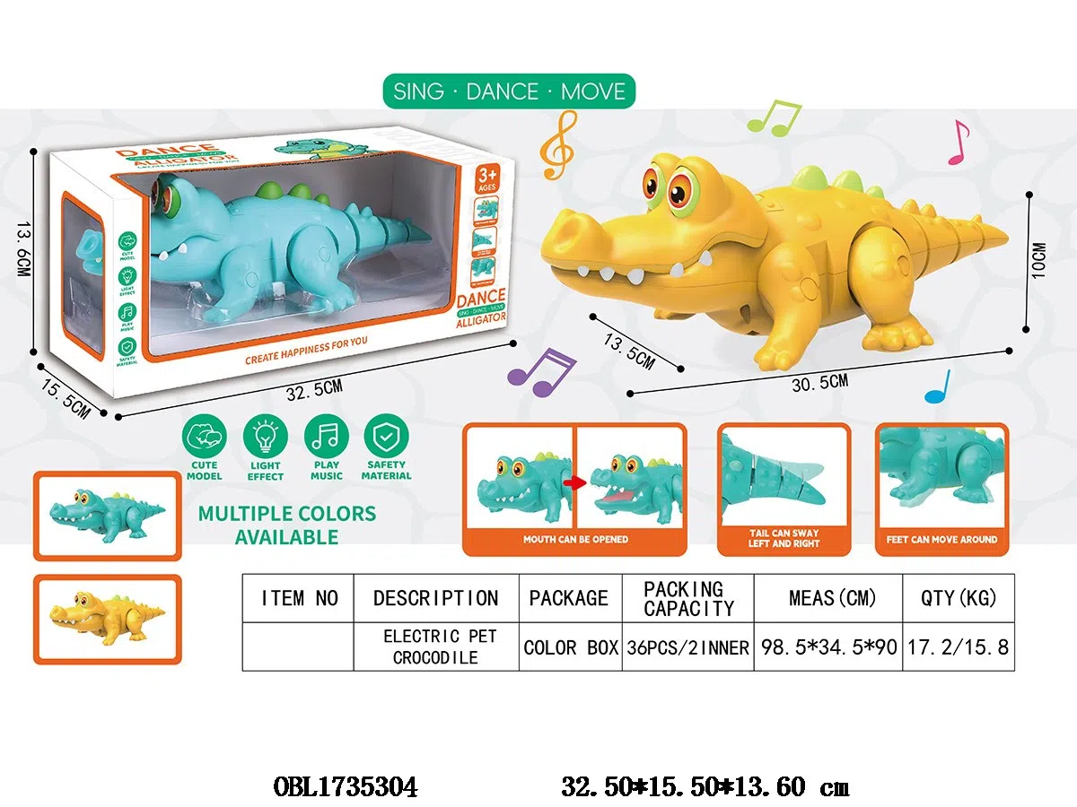 Home > B/O Animal > Electric crocodile with lights, music, 3 * AA, no electricity included, 2 colors mixed