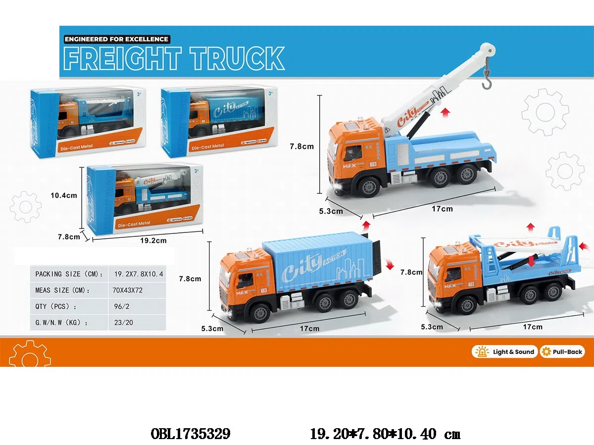 Alloy European style urban transport vehicle with light and sound, 3 * AG13 package, electric, 3 mixed models