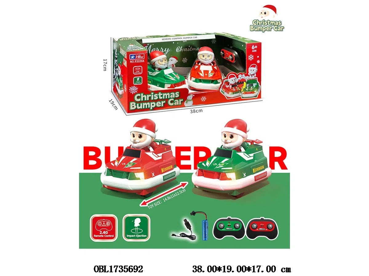 2 remote control collision cars with lights and sound, equipped with USB cable, total body size 2 * 3.7V lithium battery with power included remote control 4 * AA, no power included, 2.4G frequency, 2 color mixed Christmas version