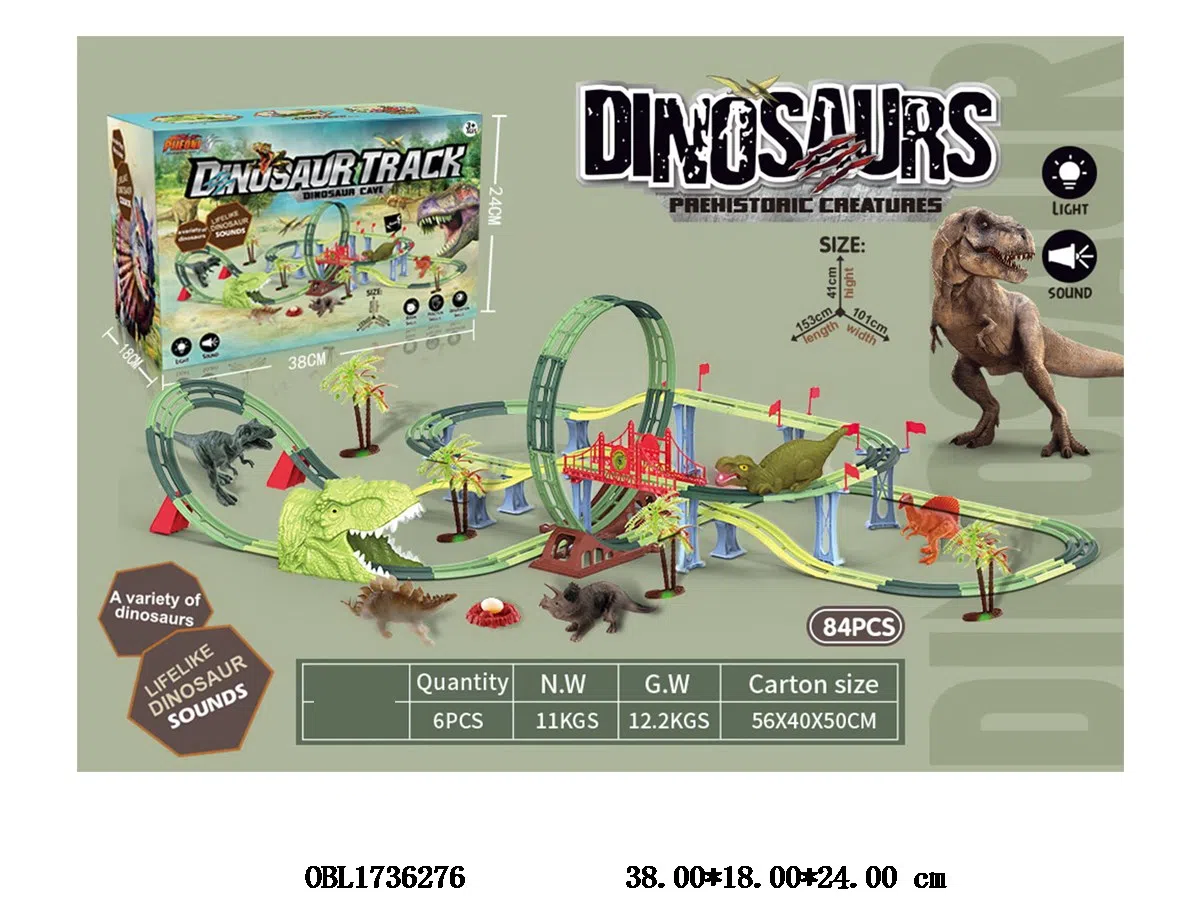 Dinosaur electric rail car set with lighting and sound, USB cable charging, lithium battery pack