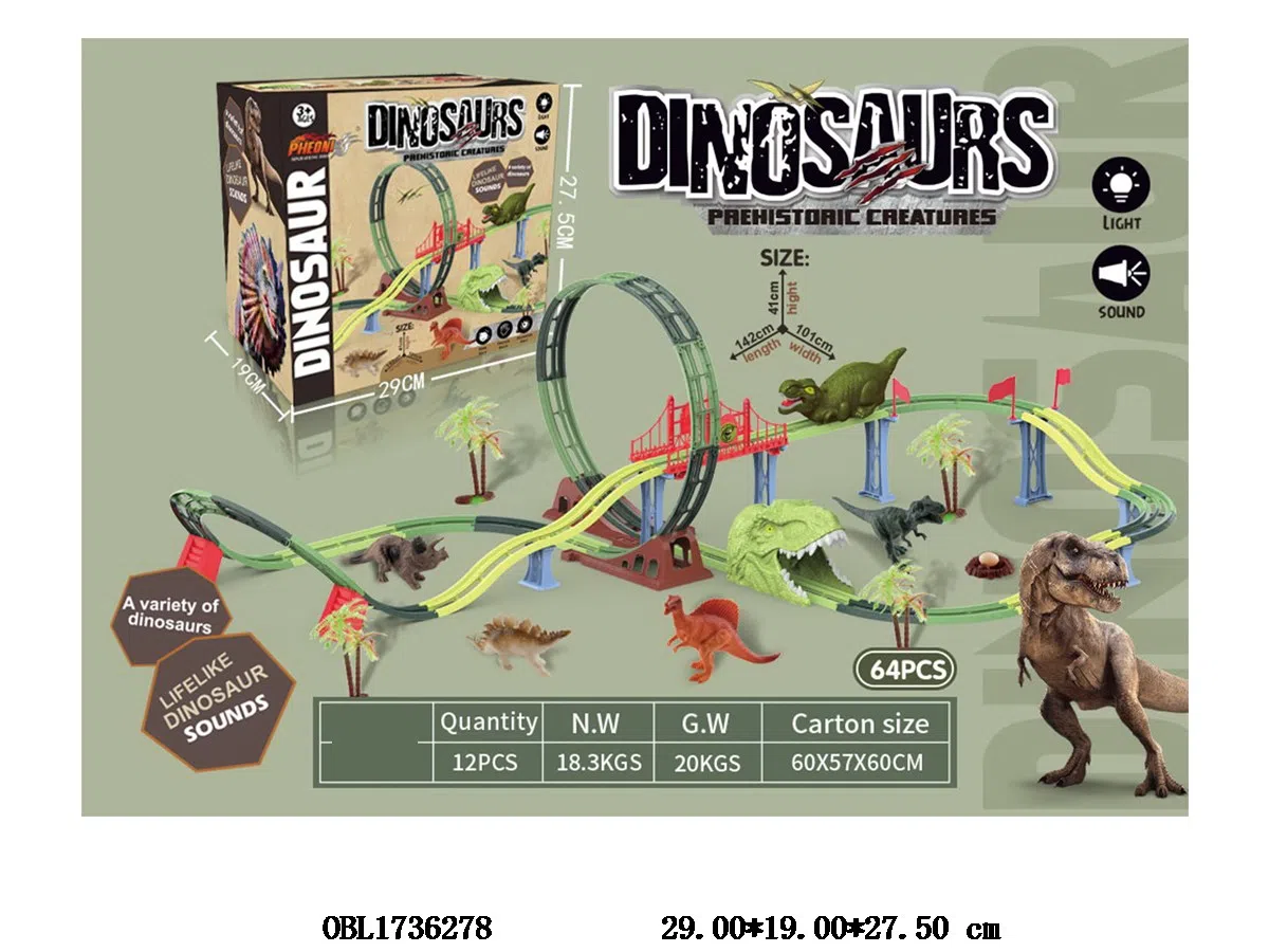 Dinosaur electric rail car set with lighting and sound, USB cable charging, lithium battery pack