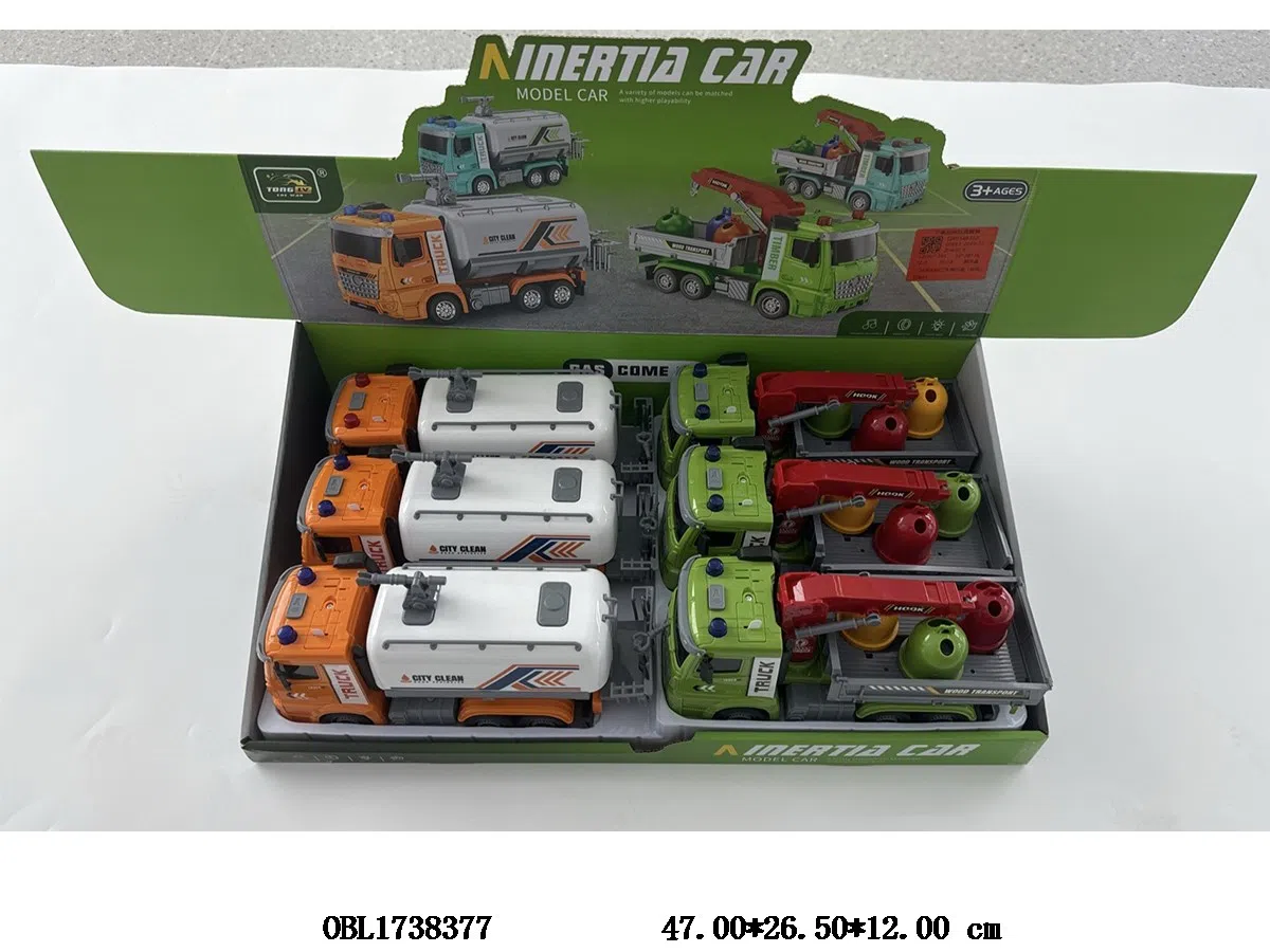 Inertial sanitation vehicle with lighting, music, 3 * AG13, including electricity, 2 colors mixed, 6 pieces, 1 display box