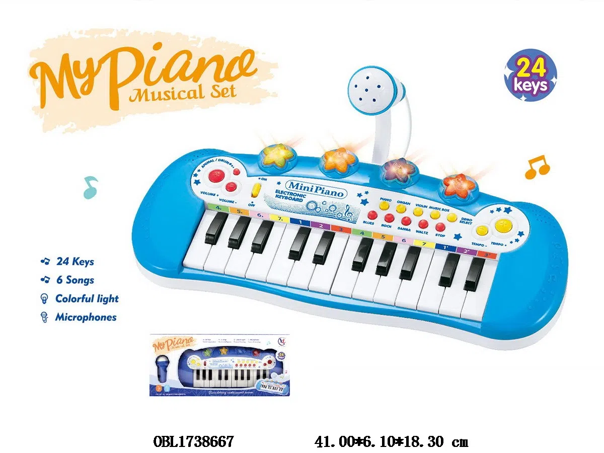 24 key multifunctional electronic keyboard with lighting and microphone, 3 * AA, no power included