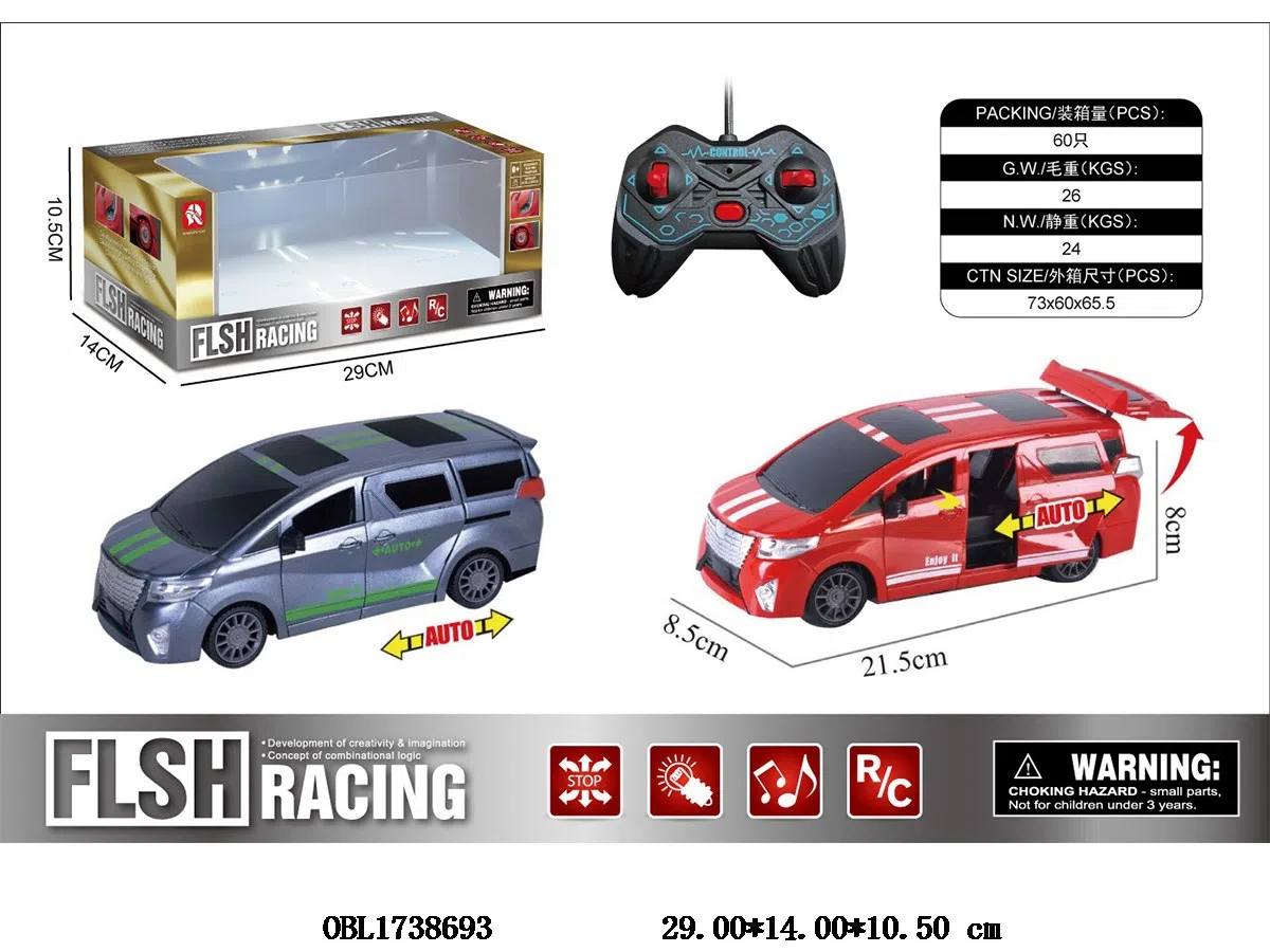 5-way remote control car with lights and sound, 1 key to open the door, 3 * AA body without power, remote control 2 * AA without power, 27 frequency, 2 color mixed