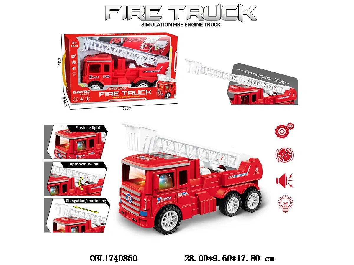 Home > B/O Car > Electric universal fire truck with lighting, music, 3 * AA, no electricity included