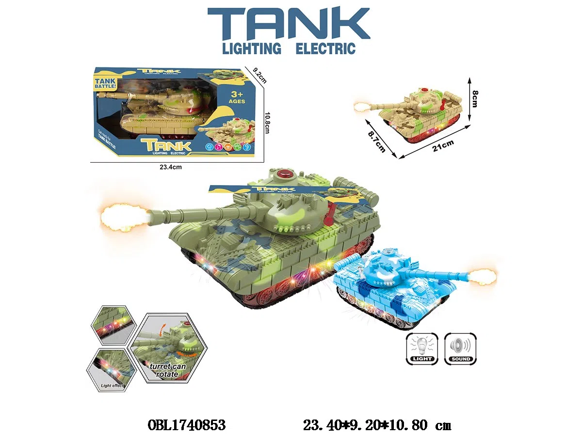 Electric universal tank with lights, music, 3 * AA, no electricity included, 3 colors mixed