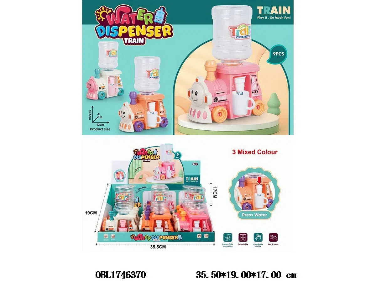 Locomotive water dispenser set, 3 colors mixed, 9 pieces per set, 1 display box