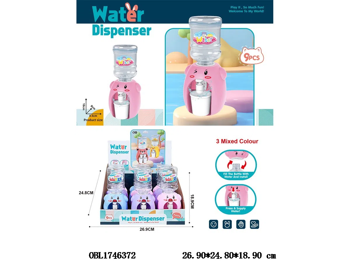 Piggy water dispenser set, 3 colors mixed, 9 pieces per set, 1 display box