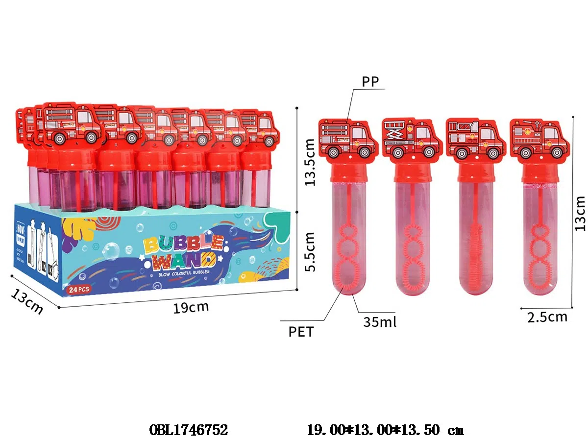 Fire truck bubble stick 35ml, 24 pieces per display box, 4 mixed types
