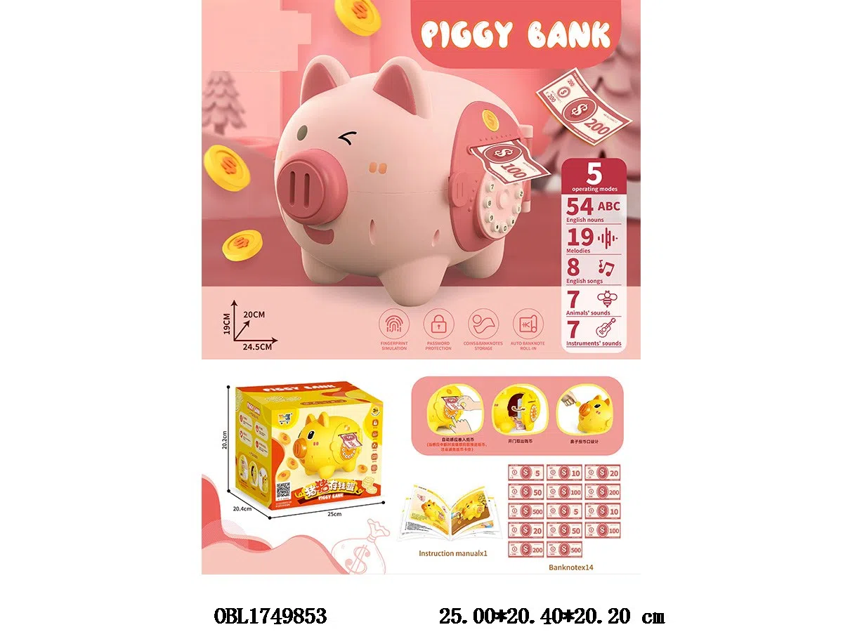 Cute and fun piggy bank with music, password protection, fingerprint authentication, simulated automatic cash roll, 3 * AA, no power included