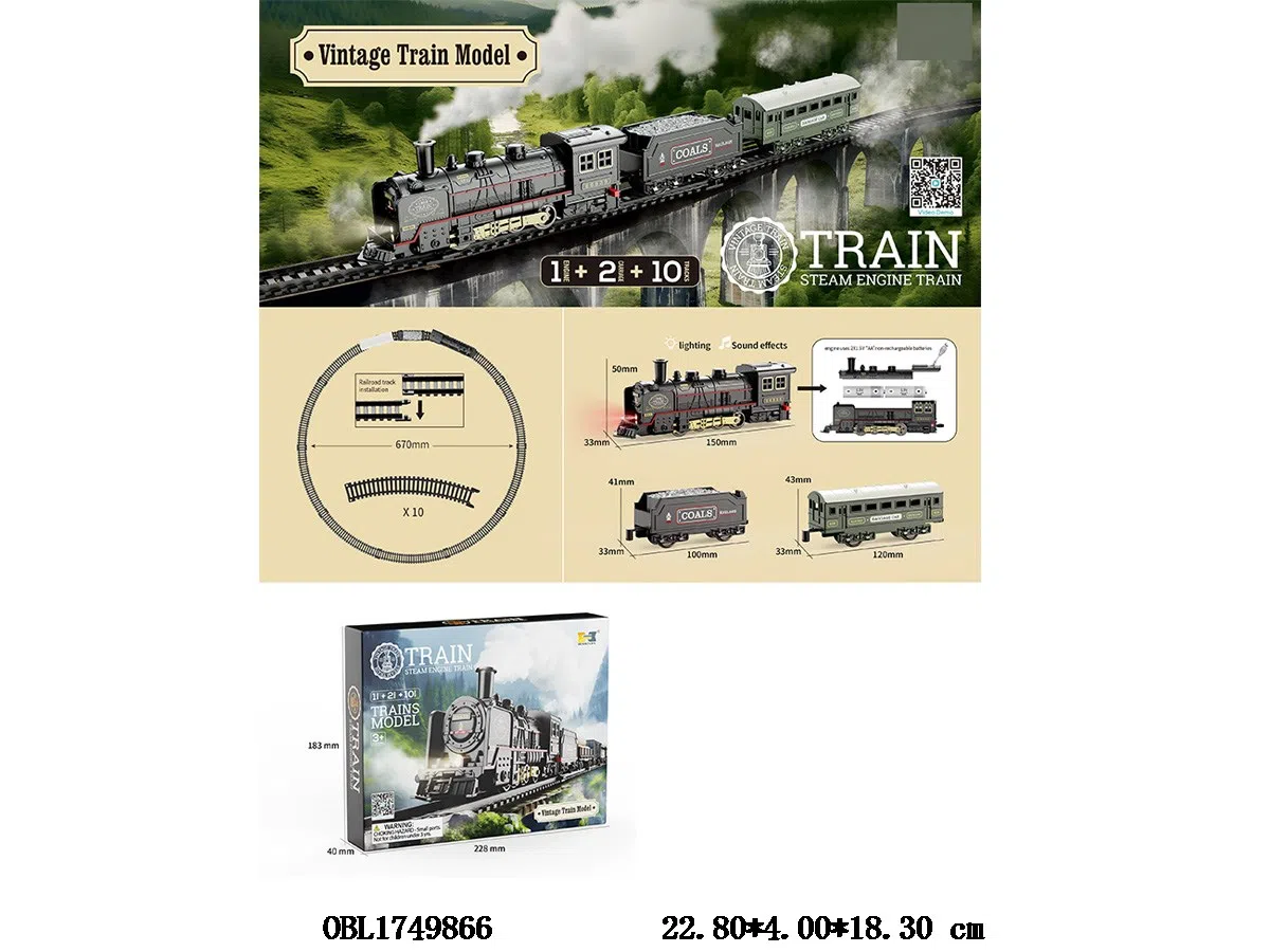 Electric rail train set with lights and sound, 2 * AA, not including electricity