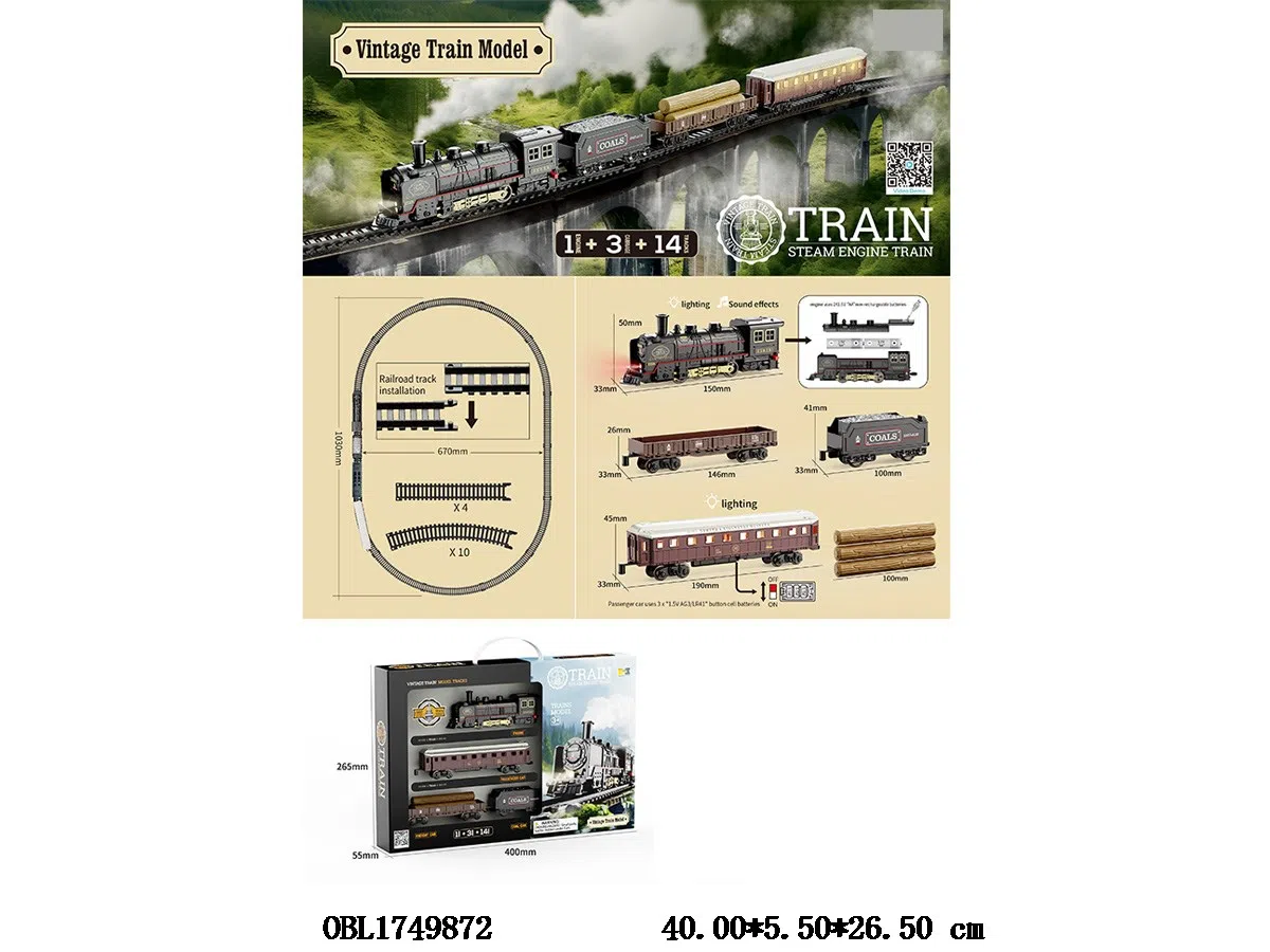Electric rail train set with lighting and sound 2 * AA, no electricity included 1 carriage with lighting 3 * AG3/LR41, electricity included