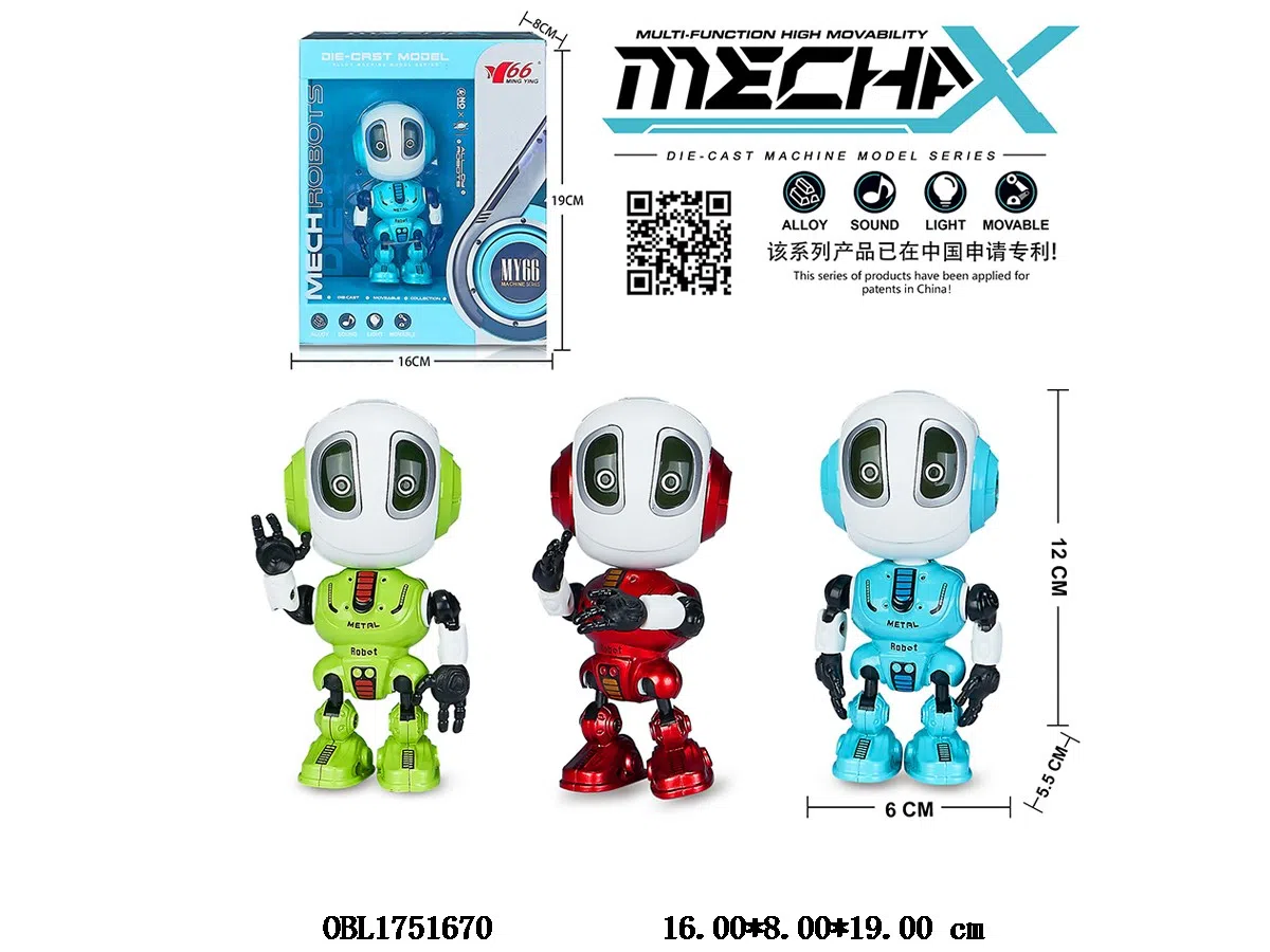 Alloy Dada robot with lighting, music, English IC, interactive sensing, recording and playback power, 3 * AG13, electric package, 3-color mixed packaging