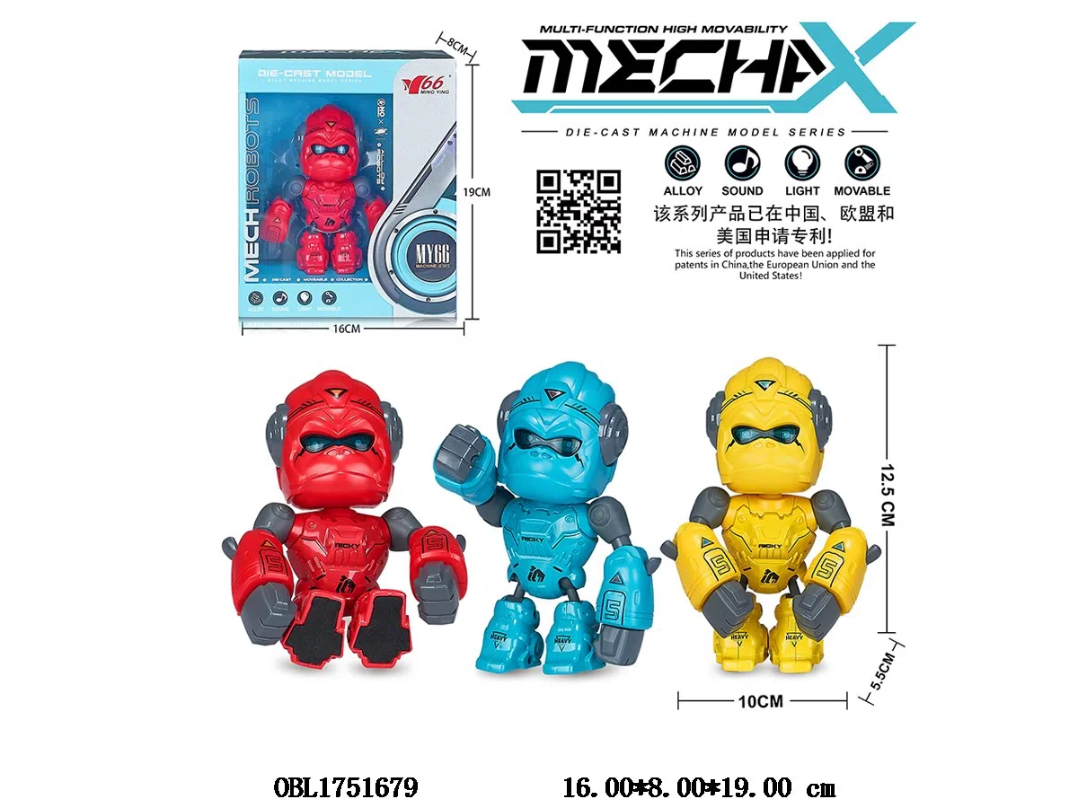 Alloy Ricky Mechanical Violence Gorilla with Light and Sound 3 Color Mixed 3 * AG13 Package Electric Arm Press