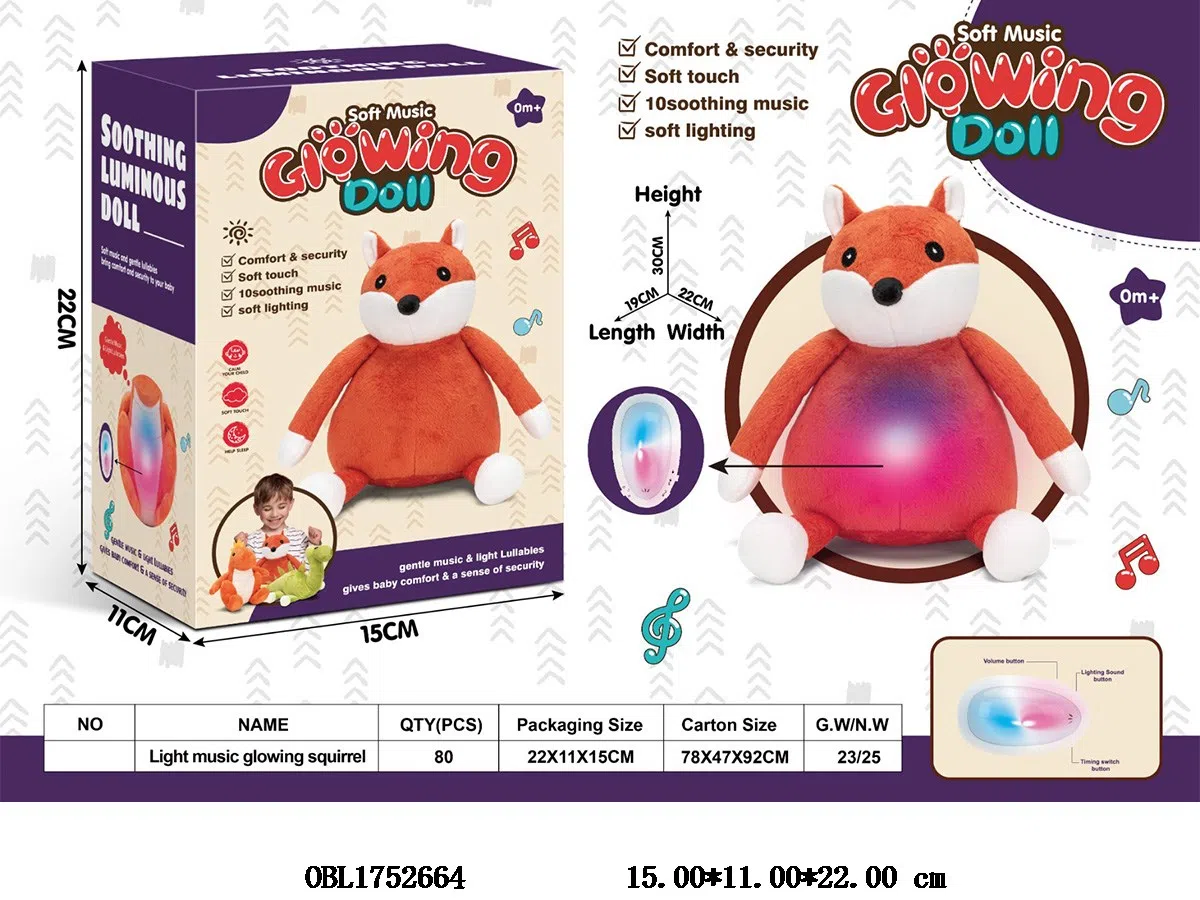 Home > Plush Toys > Plush fox soothes doll with lights, music, 3 * AAA, no electricity included