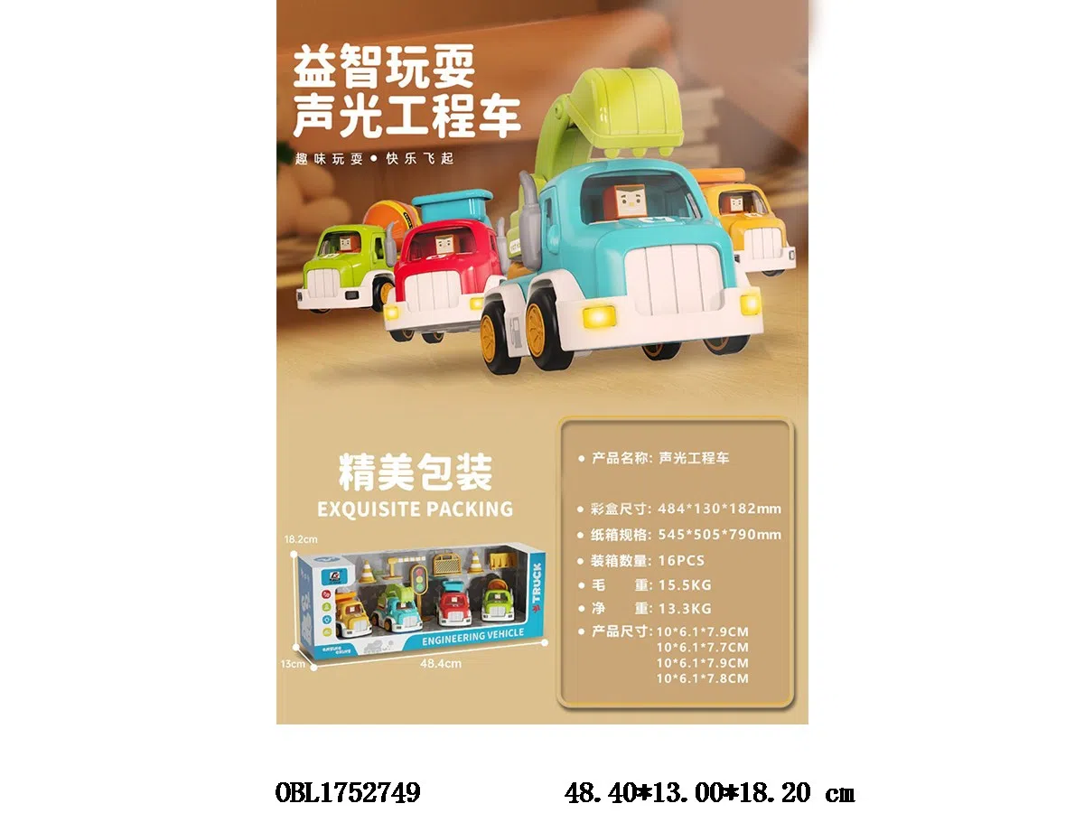 Home > F/P Car > 4 sets of inertia engineering vehicles with sound and light, 3 * AG13 package, and electricity included