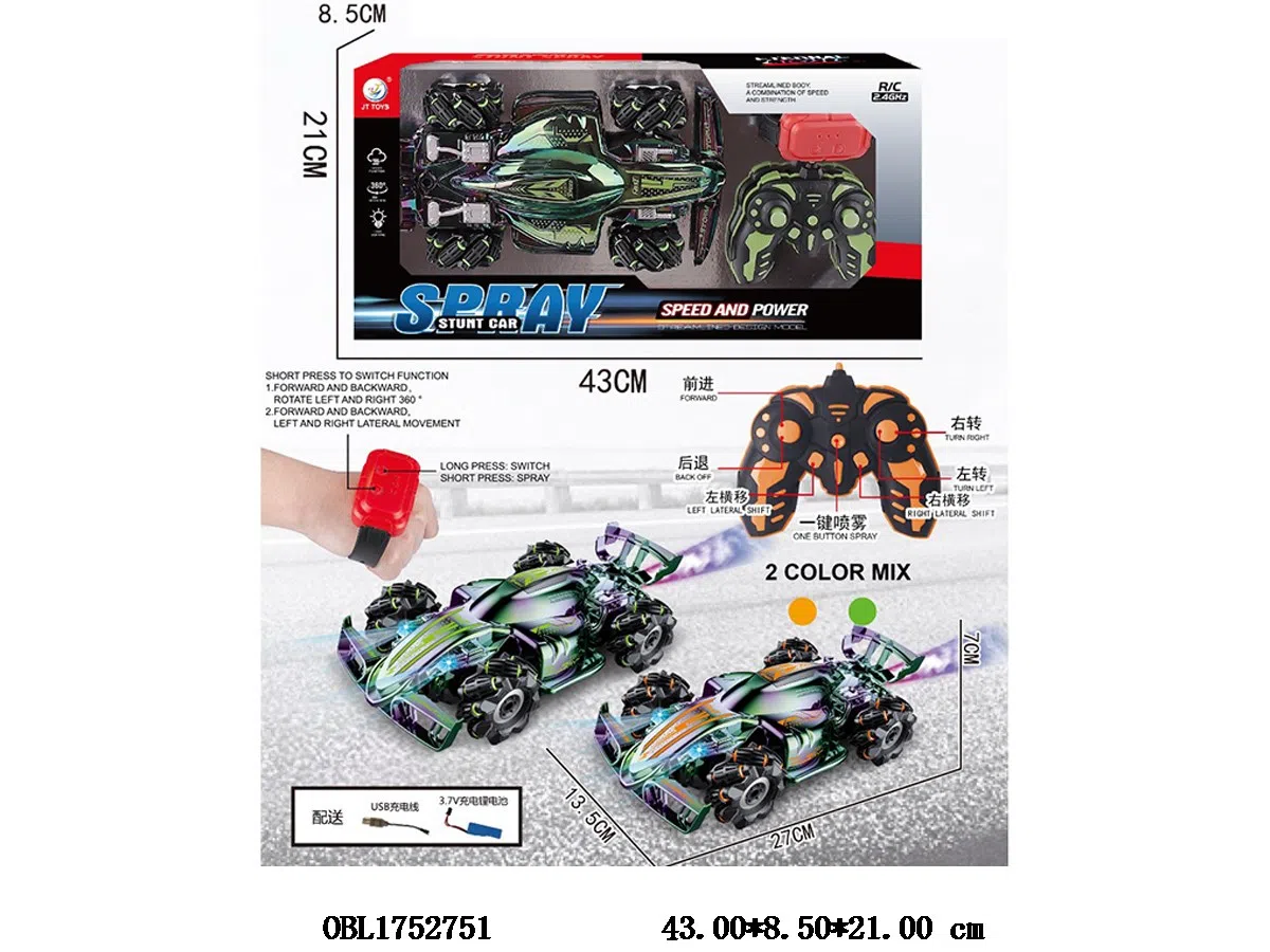 Dual mode seven way spray plating lateral moving stunt car with light spray with USB cable body 3.7V electric remote control 2 * AA electric watch not included 2 * AAA electric two color mixed 2.4G