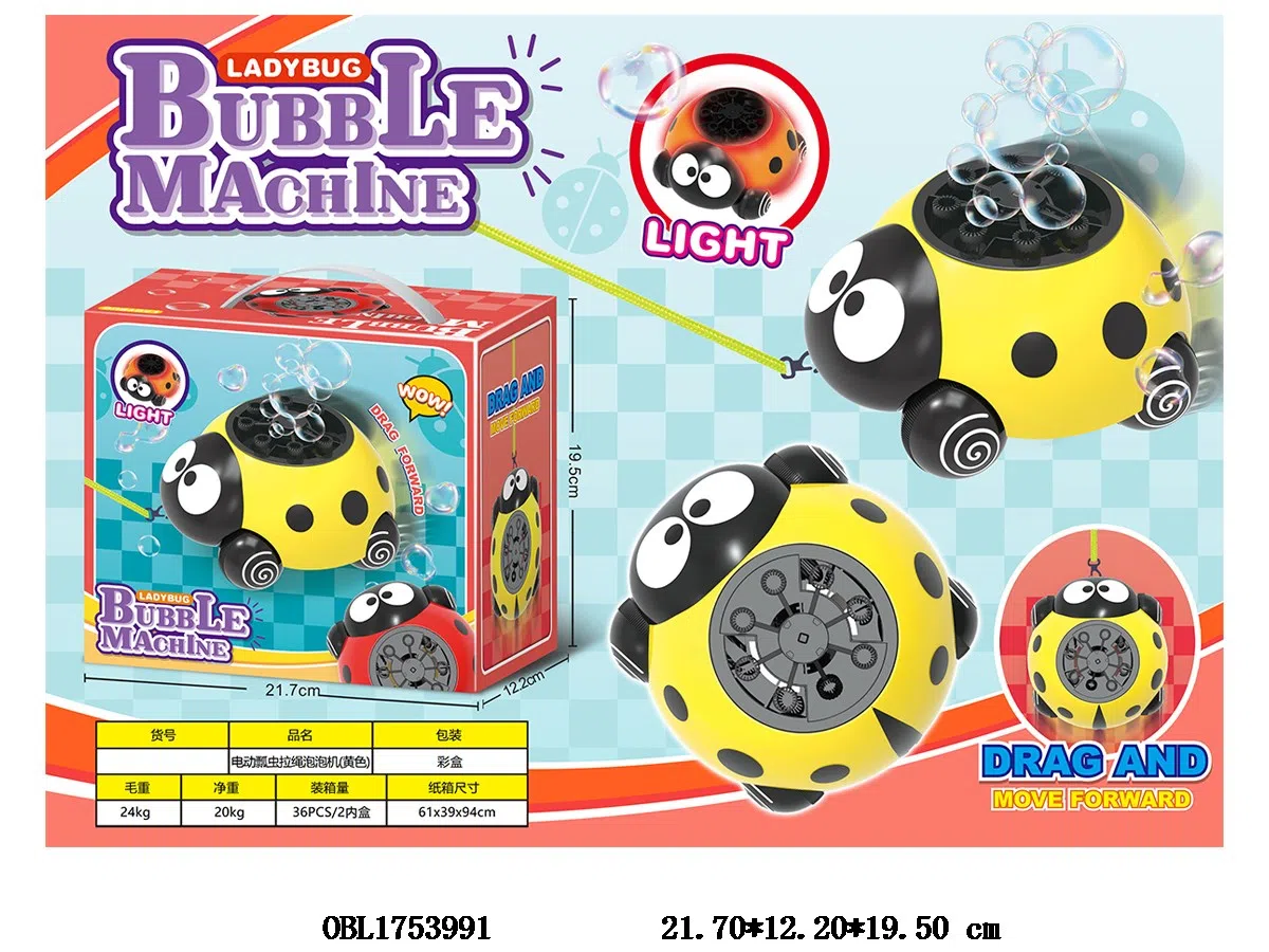 Electric Seven Star Ladybug Traction Rope Bubble Machine with Light and USB Cable 3.7V Lithium Battery Pack 2 Bottles 50ML Bubble Liquid Yellow