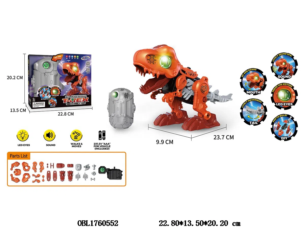 Home > B/O Animal > Electric self assembling Tyrannosaurus rex with light, sound, easy to install version, biomimetic action, shaking head and tail, 2 * AAA power package