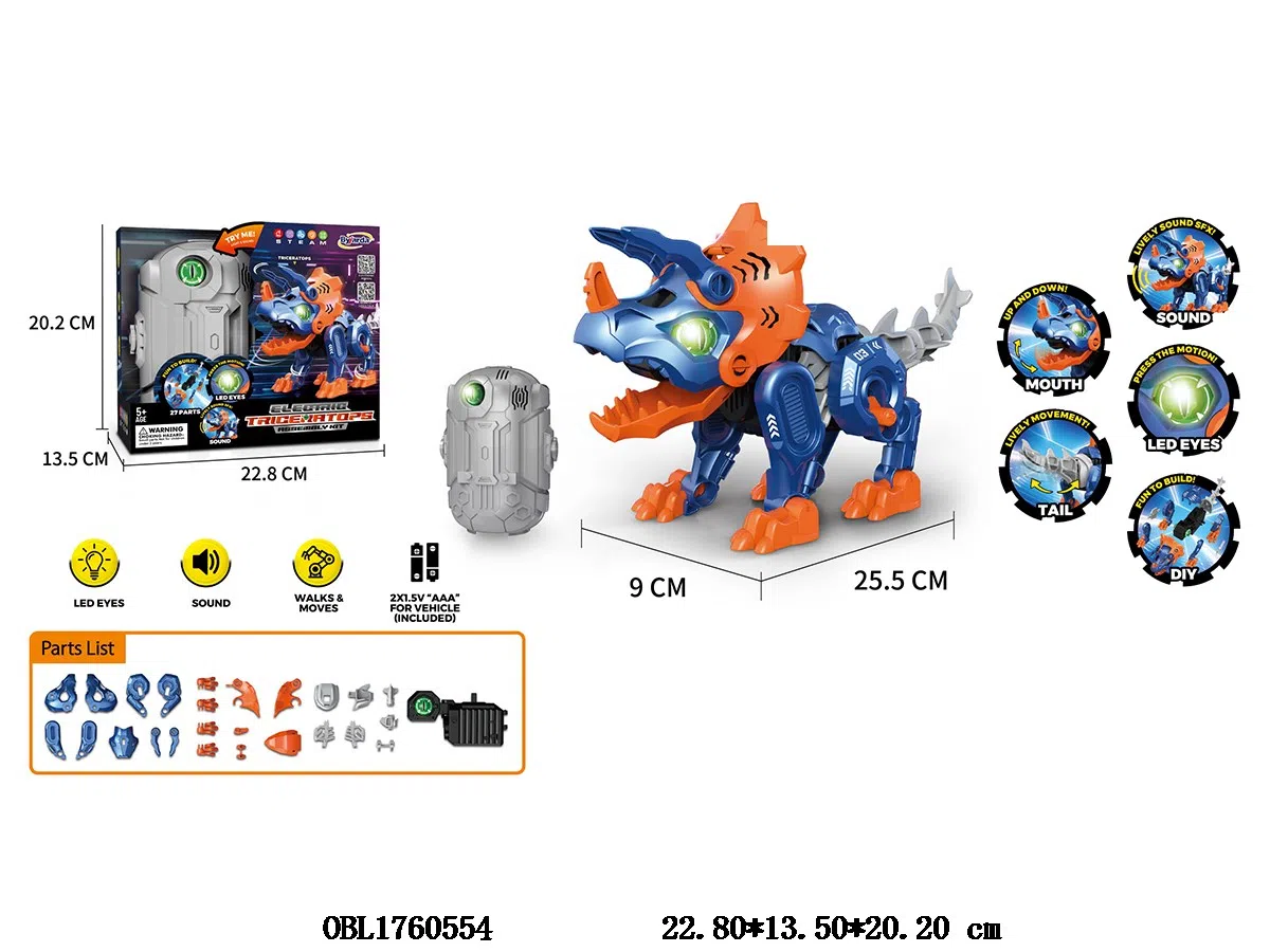 Home > B/O Animal > Electric self assembling triangular dragon with light and sound, easy to install version, biomimetic action, shaking head and tail, 2 * AAA electric package