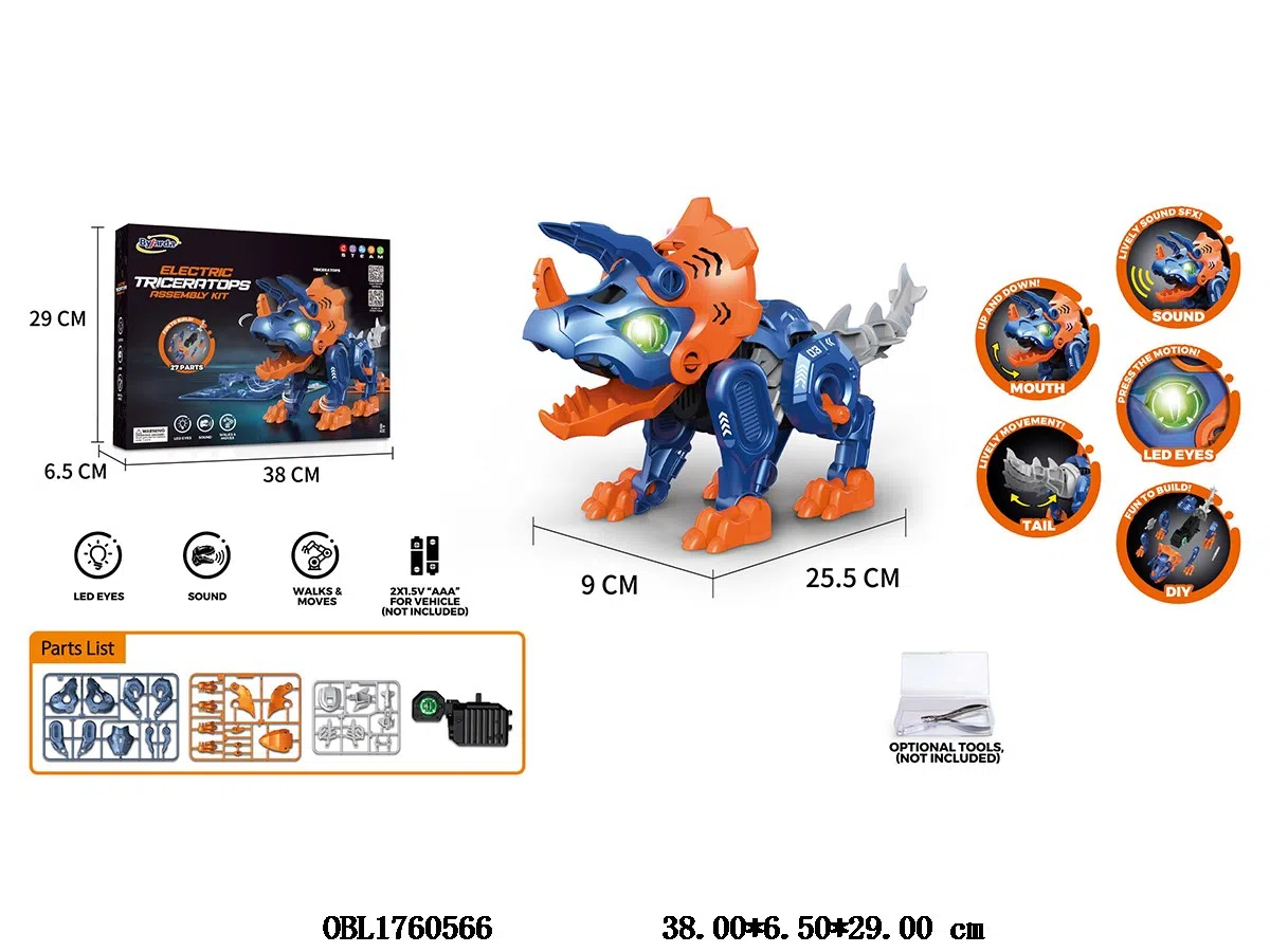 Home > B/O Animal > Electric self assembling triangular dragon with light, sound, plastic sheet version, biomimetic action, shaking head and tail, 2 * AAA, no power included