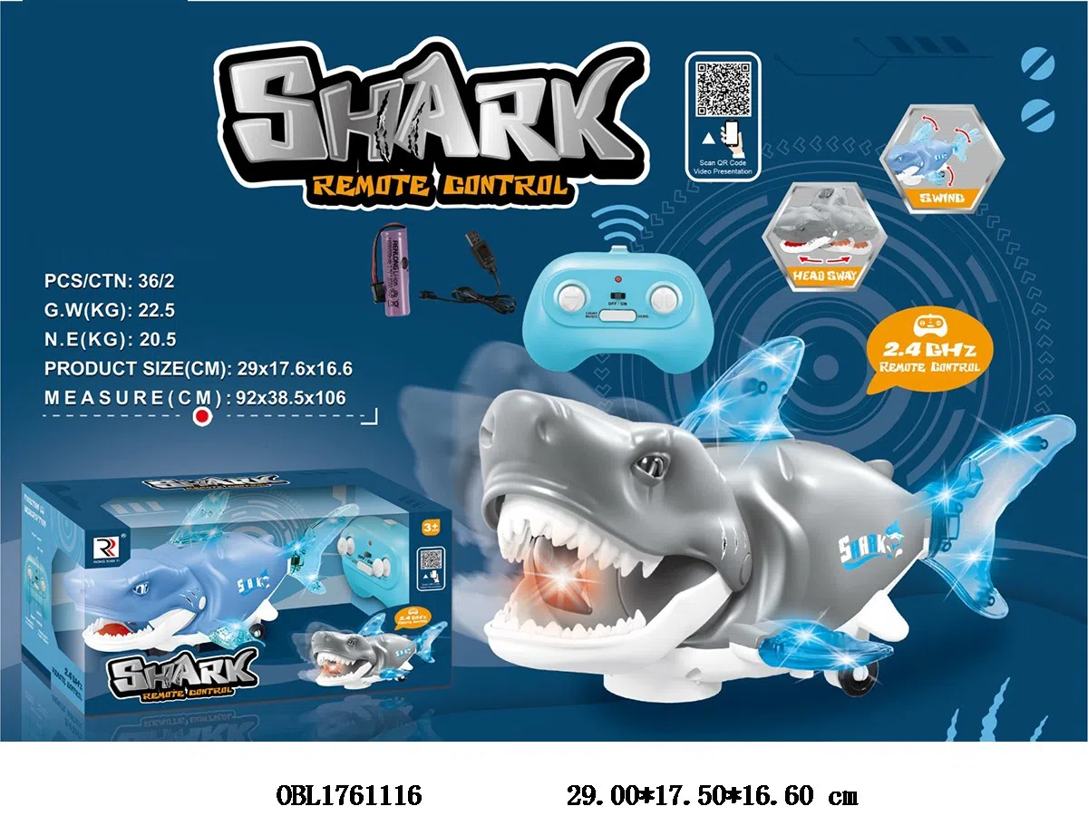 Remote shark with USB cable body 3.7V lithium battery included remote control 2 * AA without power 2.4G 2-color mixed package