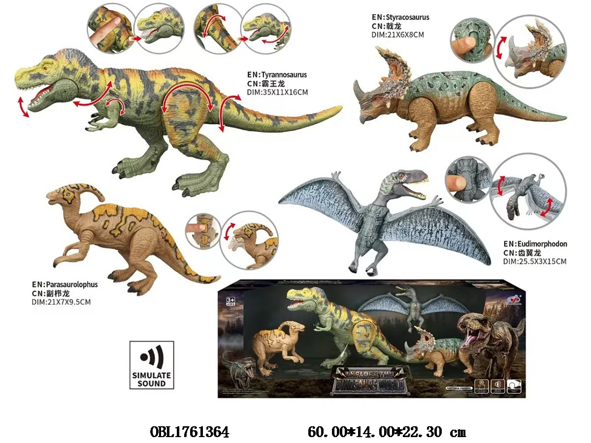Home > B/O Animal > 4 Dinosaurs with Sound 3 * AG13 Package Electric