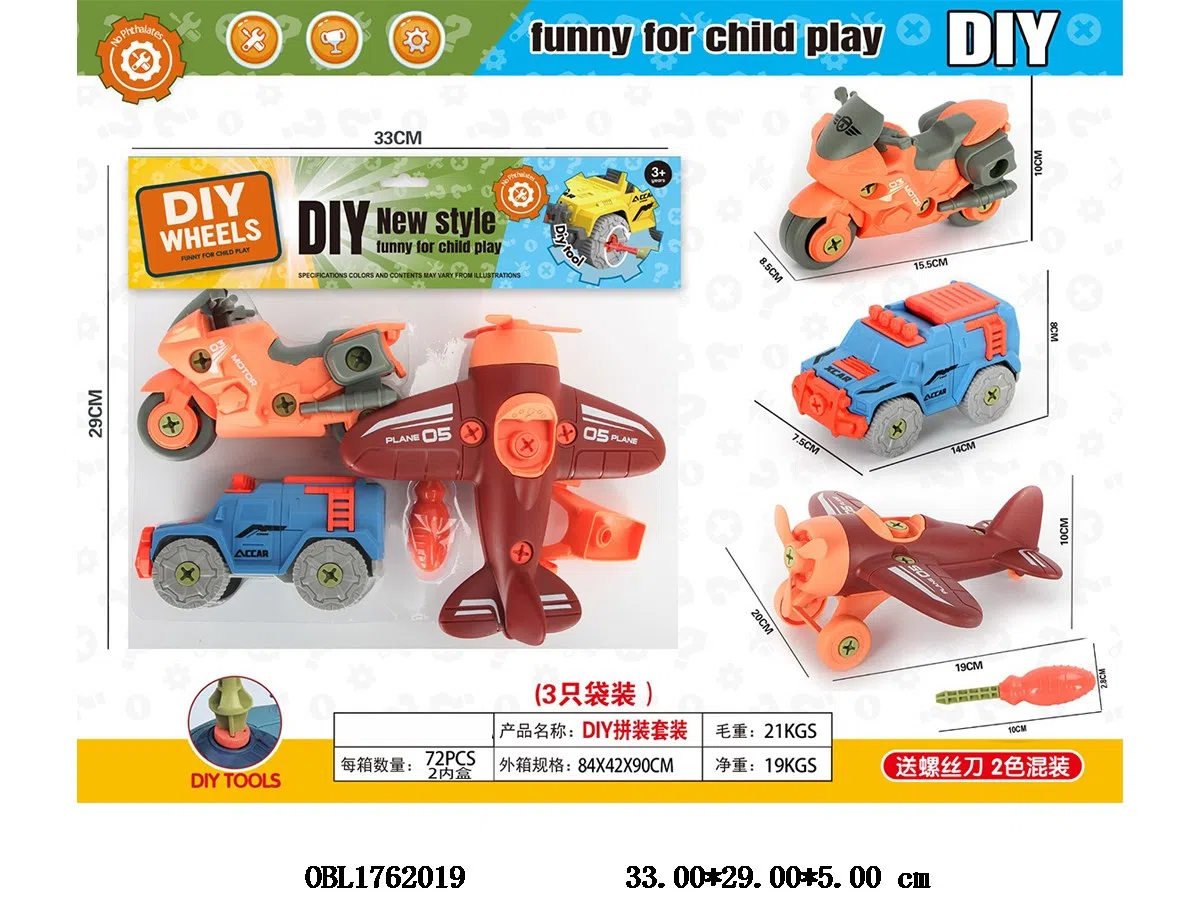 3-piece DIY assembled car/airplane/motorcycle set screwdriver with 2 colors mixed