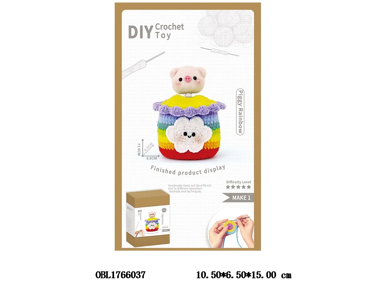 Craftsmanship DIY crochet rainbow pig solar shaking ornament with cowhide bag containing production tools