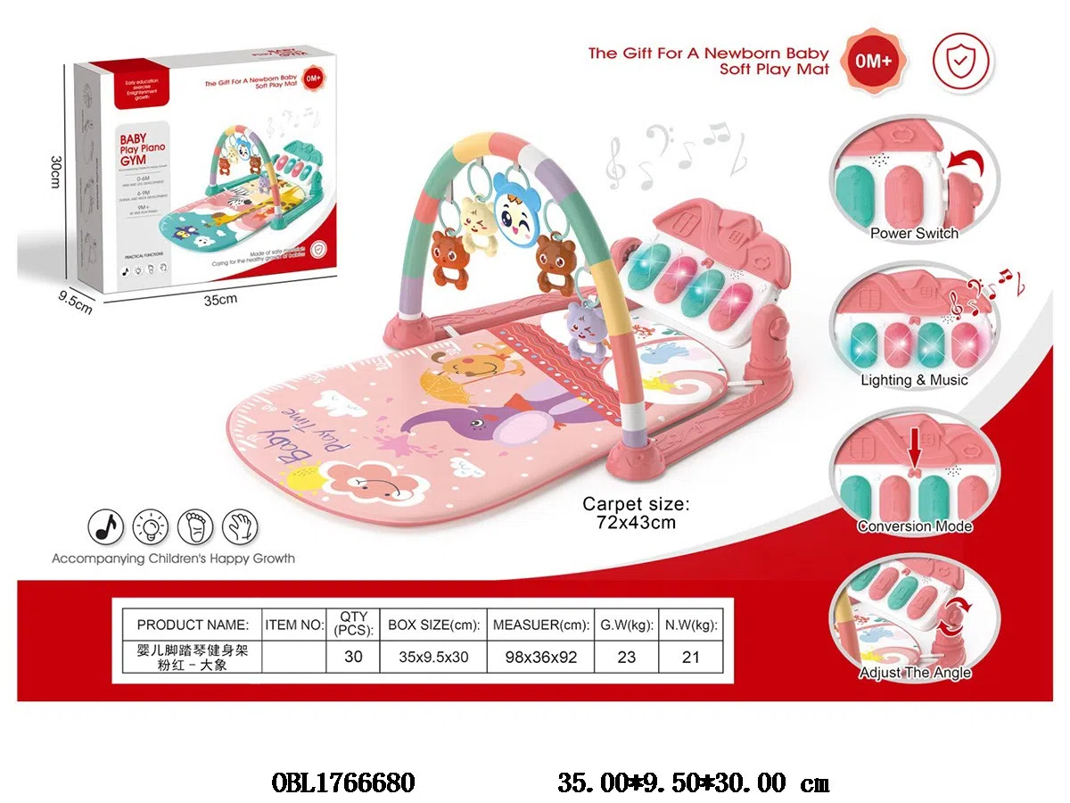 Pink Elephant Baby Foot Qin/Fitness Stand Set with Lighting and Music 3 * AA, Power Not Included