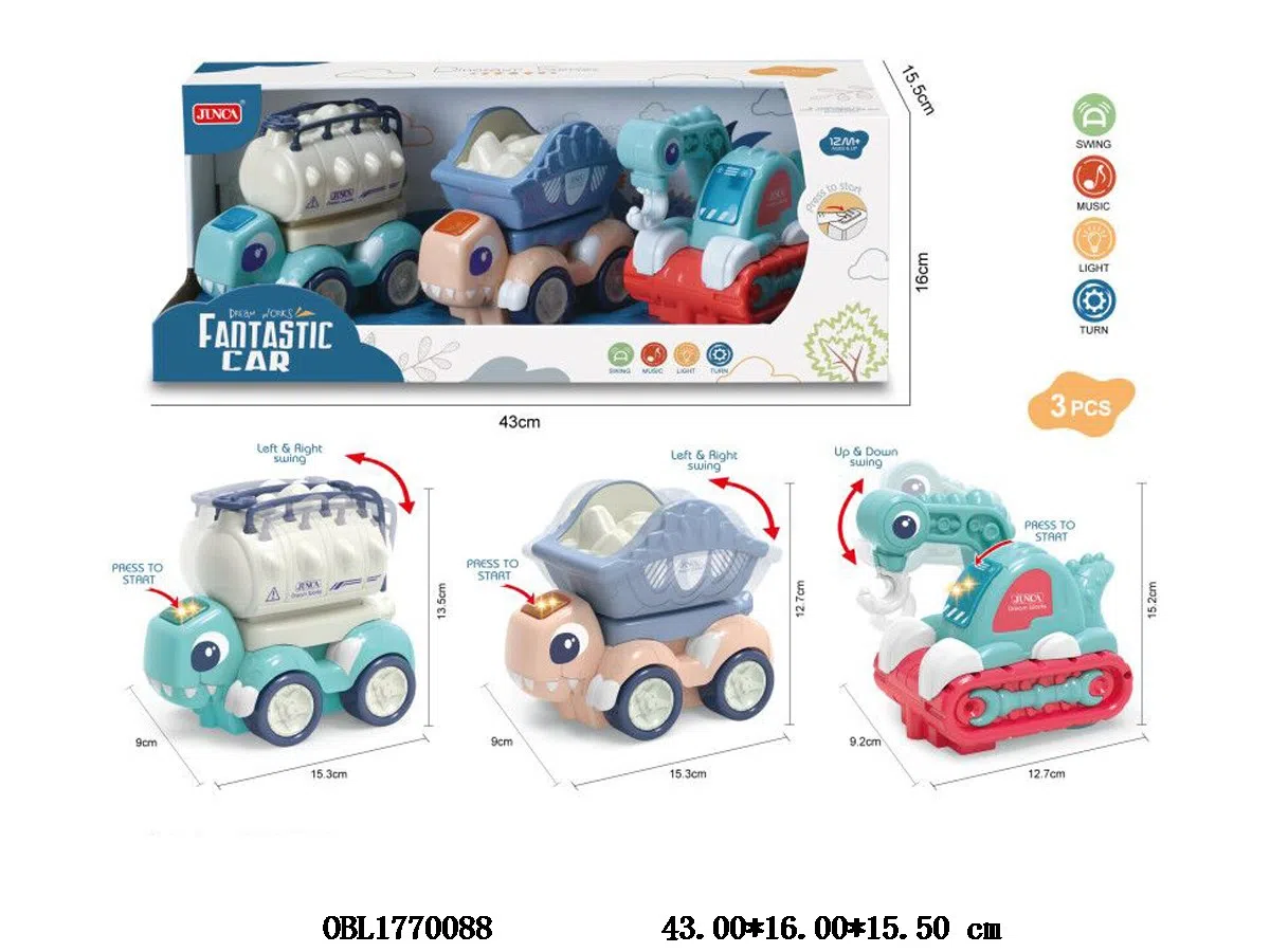 3 electric dinosaur cars with lights and sound, 2 * AAA, no power included