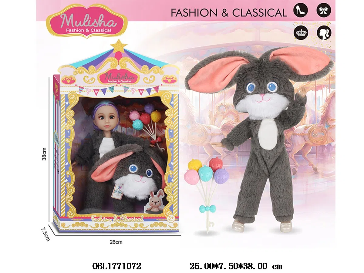 Home > Barbie Dolls & Barbie Sets > 12 inch solid body active joint gray rabbit doll set main clothing 1 style 1 color