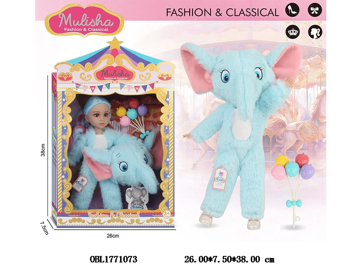Home > Barbie Dolls & Barbie Sets > 12 inch solid body articulated elephant doll set main clothing 1 style 1 color