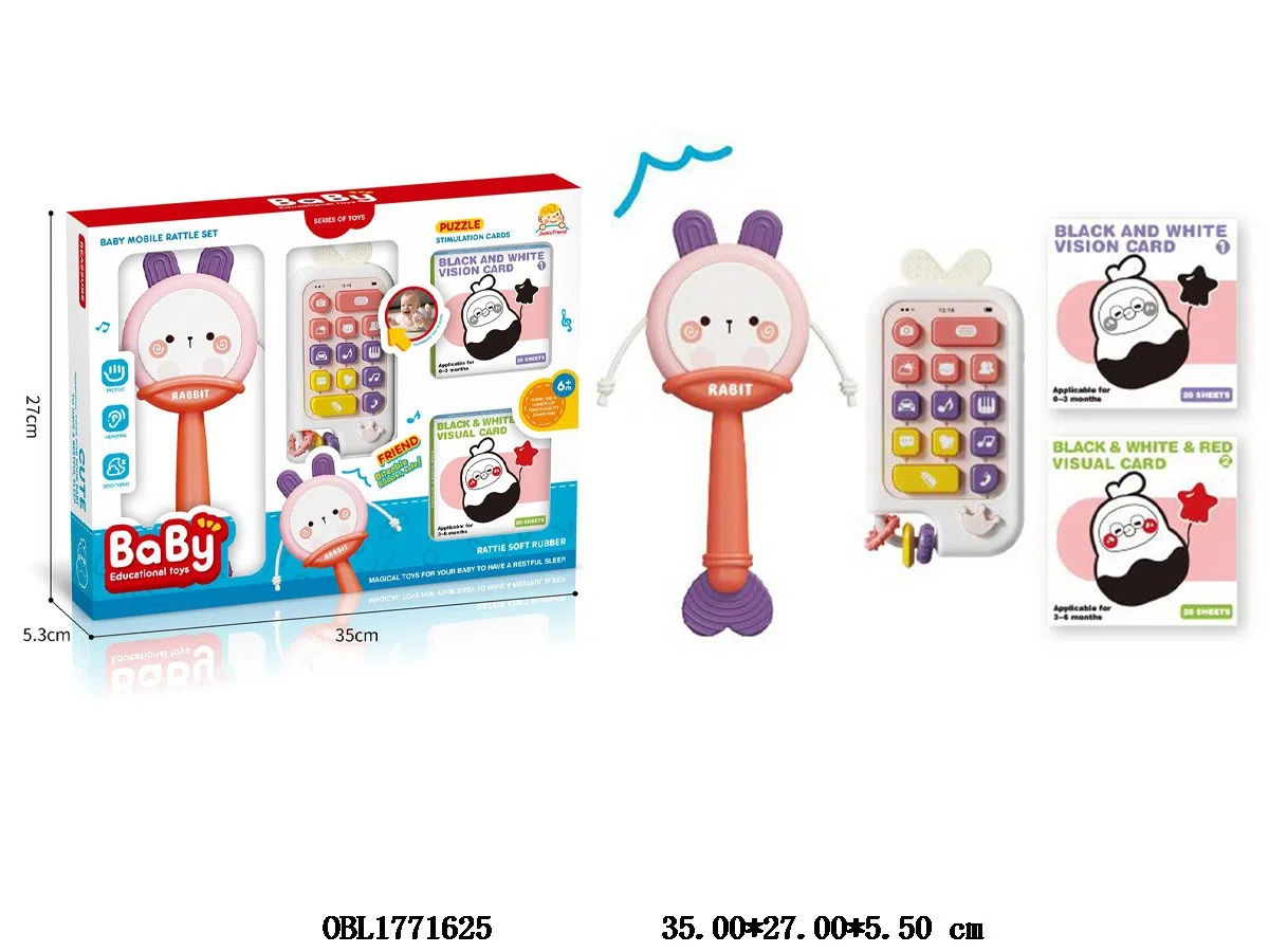 Orange Red Rabbit Paddle Drum with Pink Puzzle Early Education Mobile Card Phone with Music 2 * AAA, Power Not included