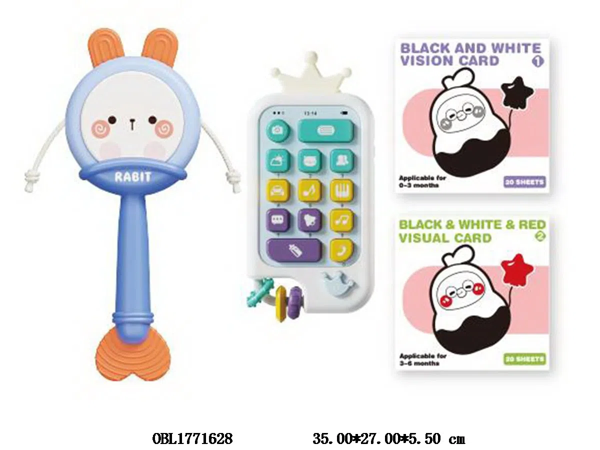 Home > Wave Drum > Blue rabbit tambourine paired with blue puzzle early education mobile card, mobile phone with music 2 * AAA, no electricity included