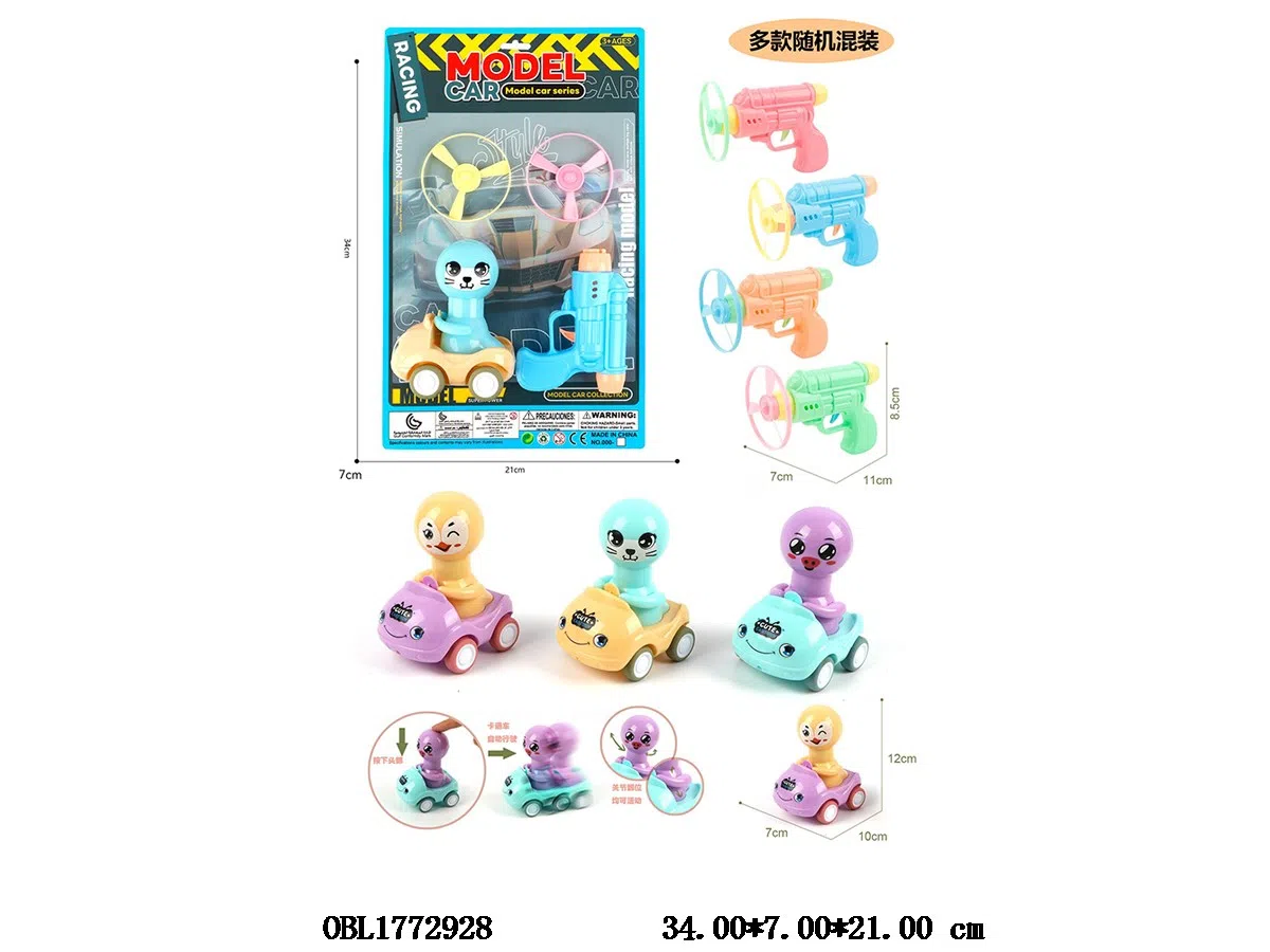 Press cartoon car with UFO gun car, 3 mixed UFO guns, 4 color mixed