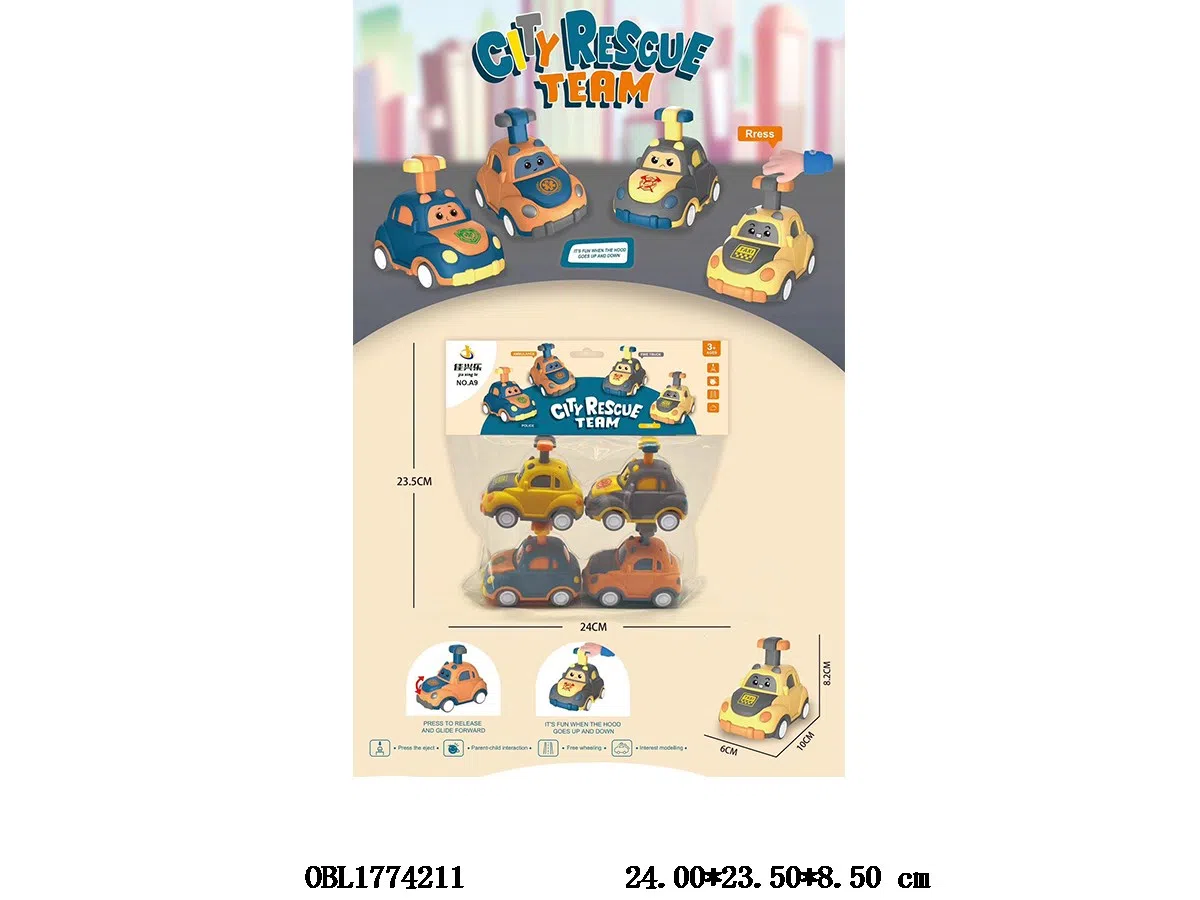 4-pack cartoon press toy car, 4-color mixed border car, overall mobilization