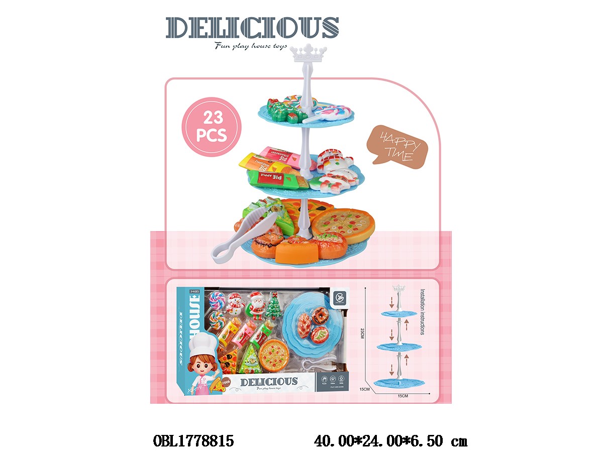 Home > Food Set > Food set with three-layer cake tray mixed with blue and pink