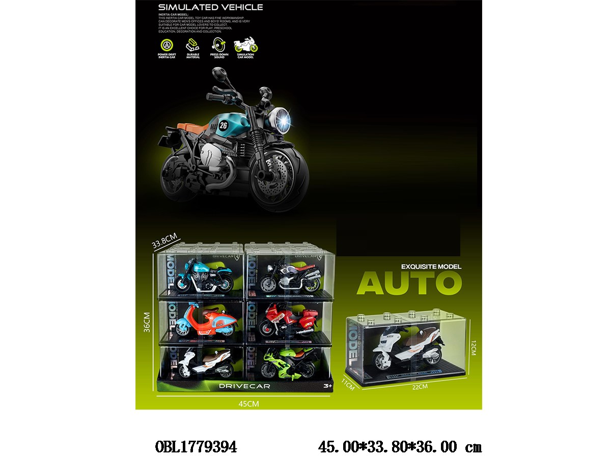 Inertial motorcycle with light, sound, 3 * AG13, including electricity, multiple mixed models, 18 small boxes, one display box
