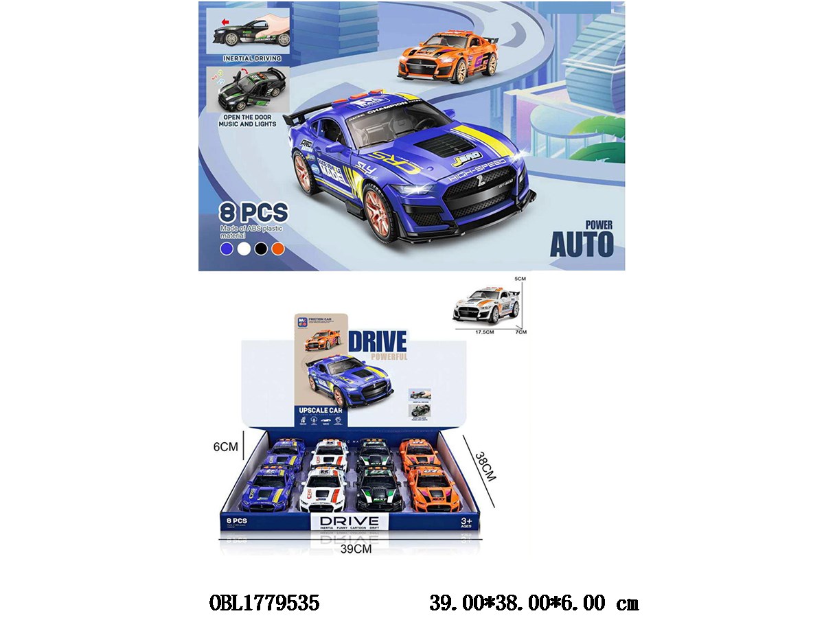 Inertial car with lighting, music, 3 * AG13, electric package, 4 colors mixed, 8 pieces per display box