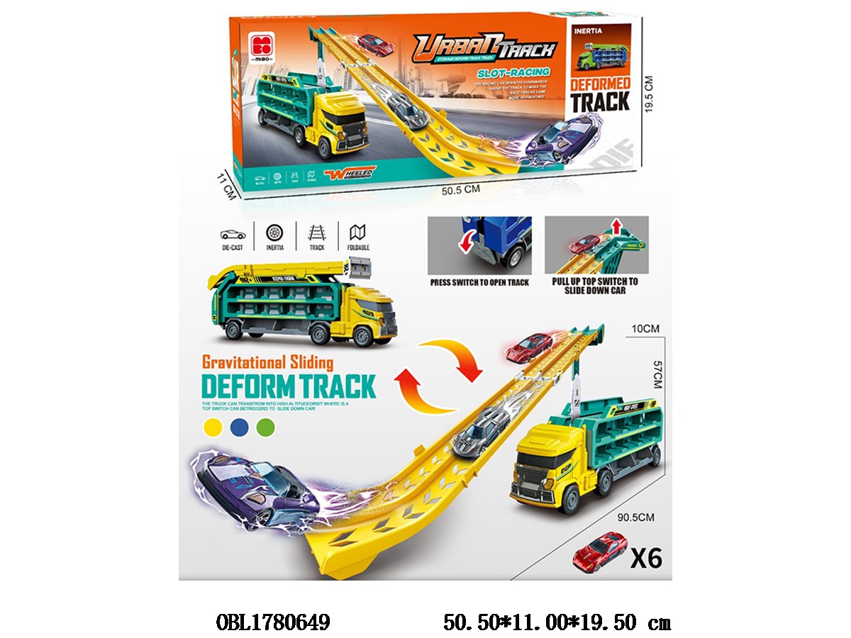 Inertial deformation gliding lift track storage car set of 6 alloy gliding cars in yellow cleaning