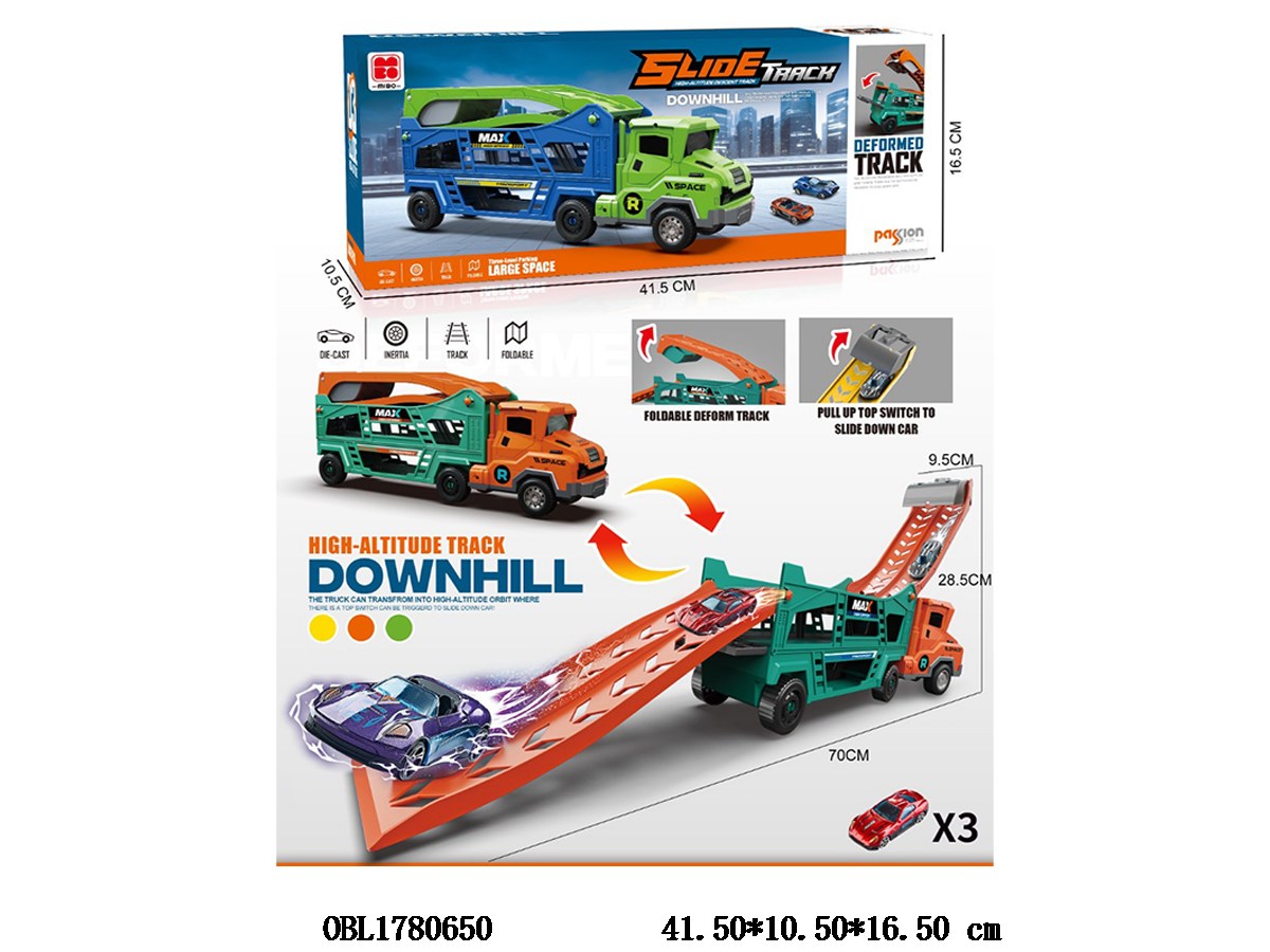 Inertial double folding gliding track storage car set, 3 alloy gliding cars, orange cleaning set