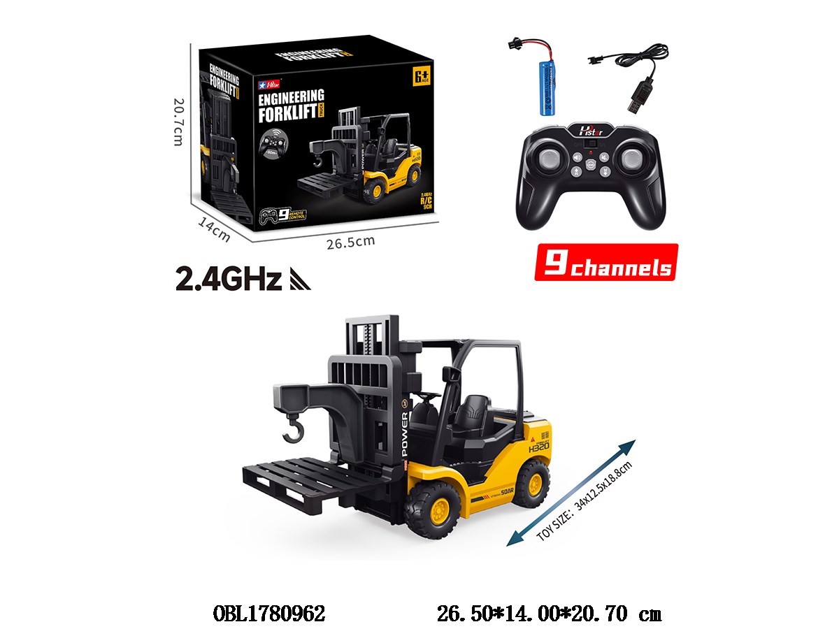 9-way remote control forklift with USB cable body 3.7V lithium battery included remote control 2 * AA non included 2.4G frequency