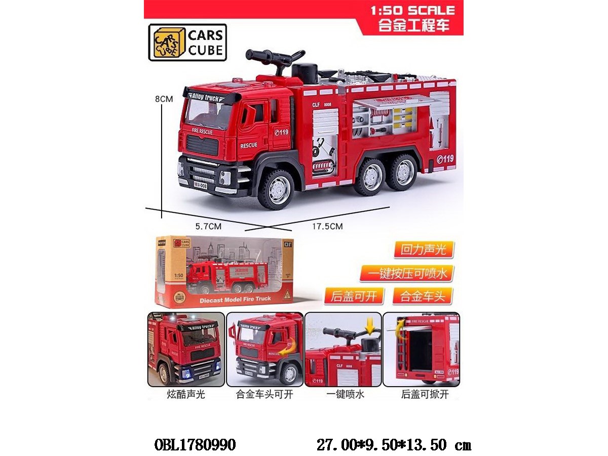 Alloy powered fire truck with lights, sound, water spray, 3 * AG13 package, electricity included