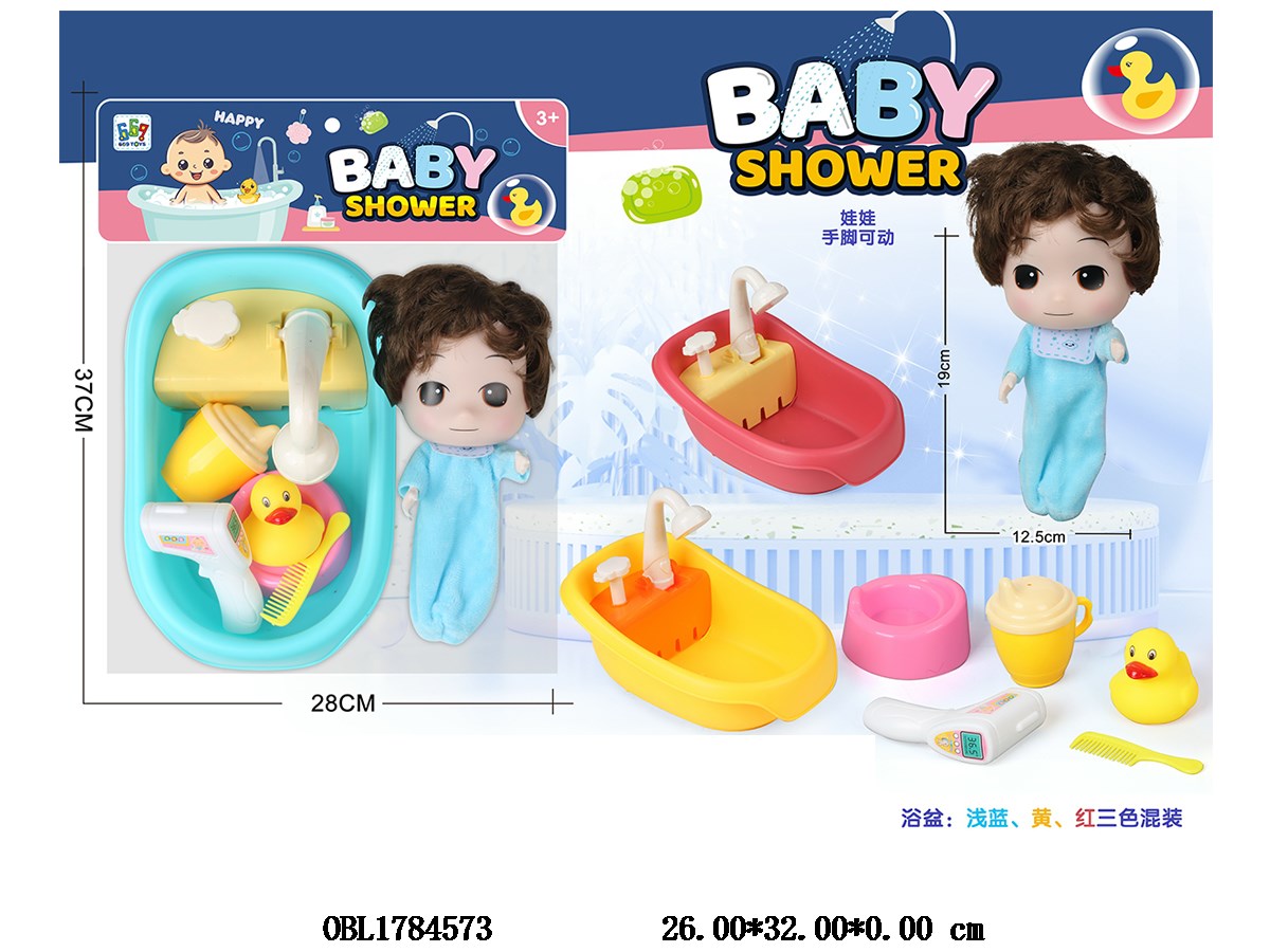 6-inch physical activity joint male doll bathtub set, hand pressure water spray bathtub, 3-color mixed main body clothing, one color