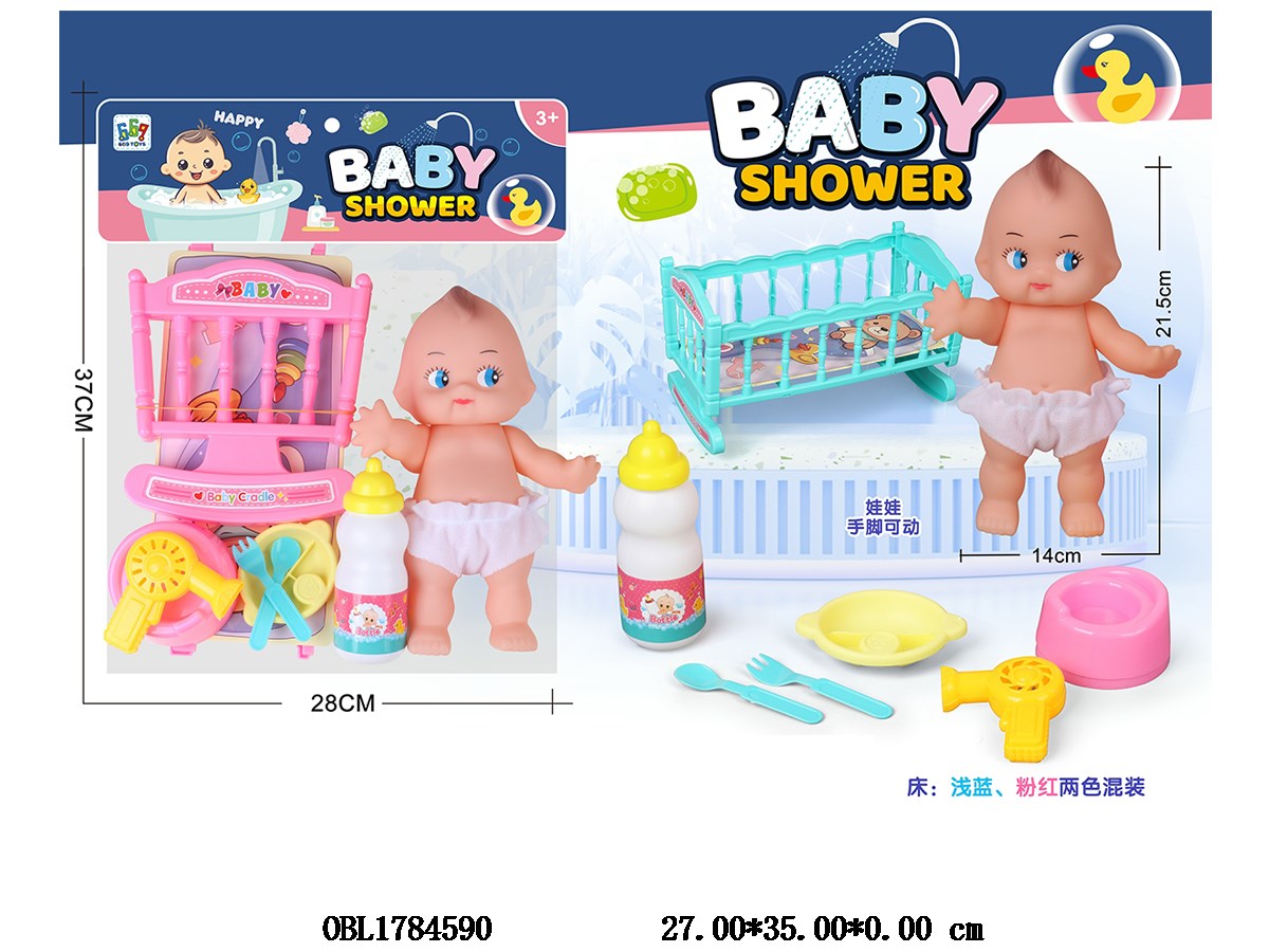 8.5-inch Vinyl Doll Set with Bed, 2-Color Mixed Bed