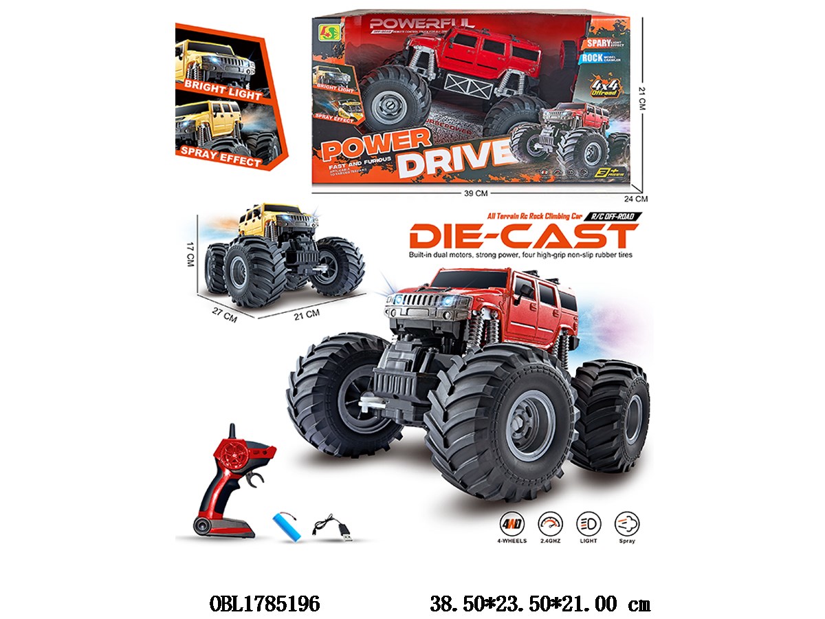 1: 12 four-way remote control vehicle with spray and USB cable body 3.7V lithium battery pack electric remote control 2 * AA without power pack 2.4G frequency 2-color mixed pack