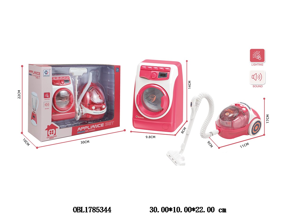 Home > Household Appliances > Washing machine/vacuum cleaner set with lighting and sound. Washing machine 2 * AA, no electricity included. Vacuum cleaner 3 * AA, no electricity included